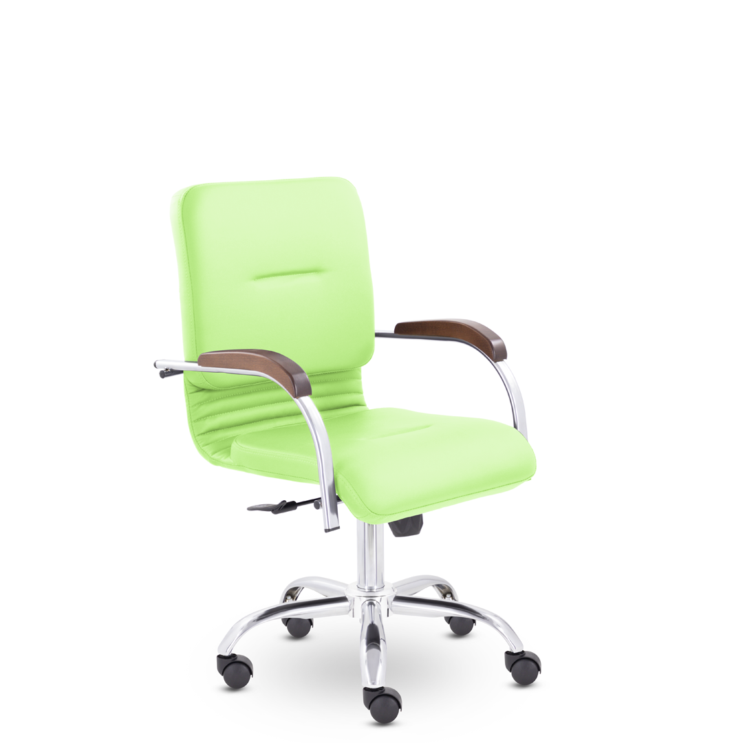Улучшенная комплектация стула Самба включает горизонтальные прострочки, соединяющие спинку и сиденье, что придает креслу элегантный вид. Удобные накладки обеспечивают комфортную поддержку рук и способствуют их расслаблению.