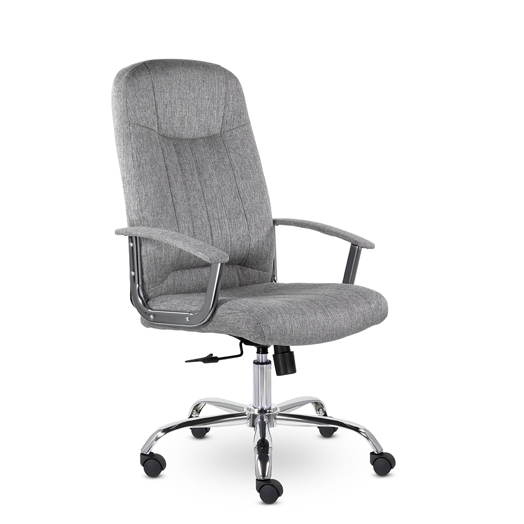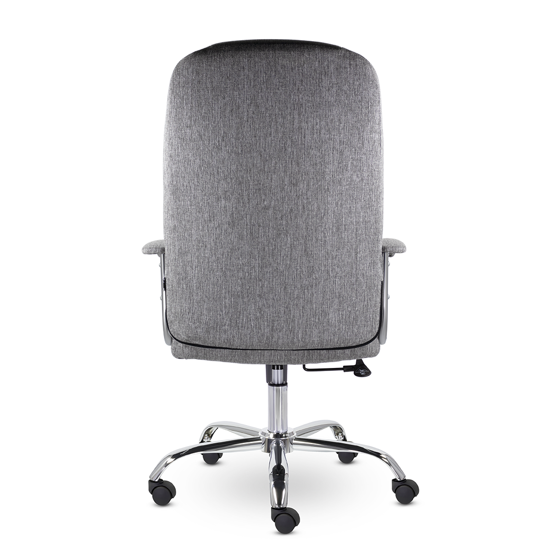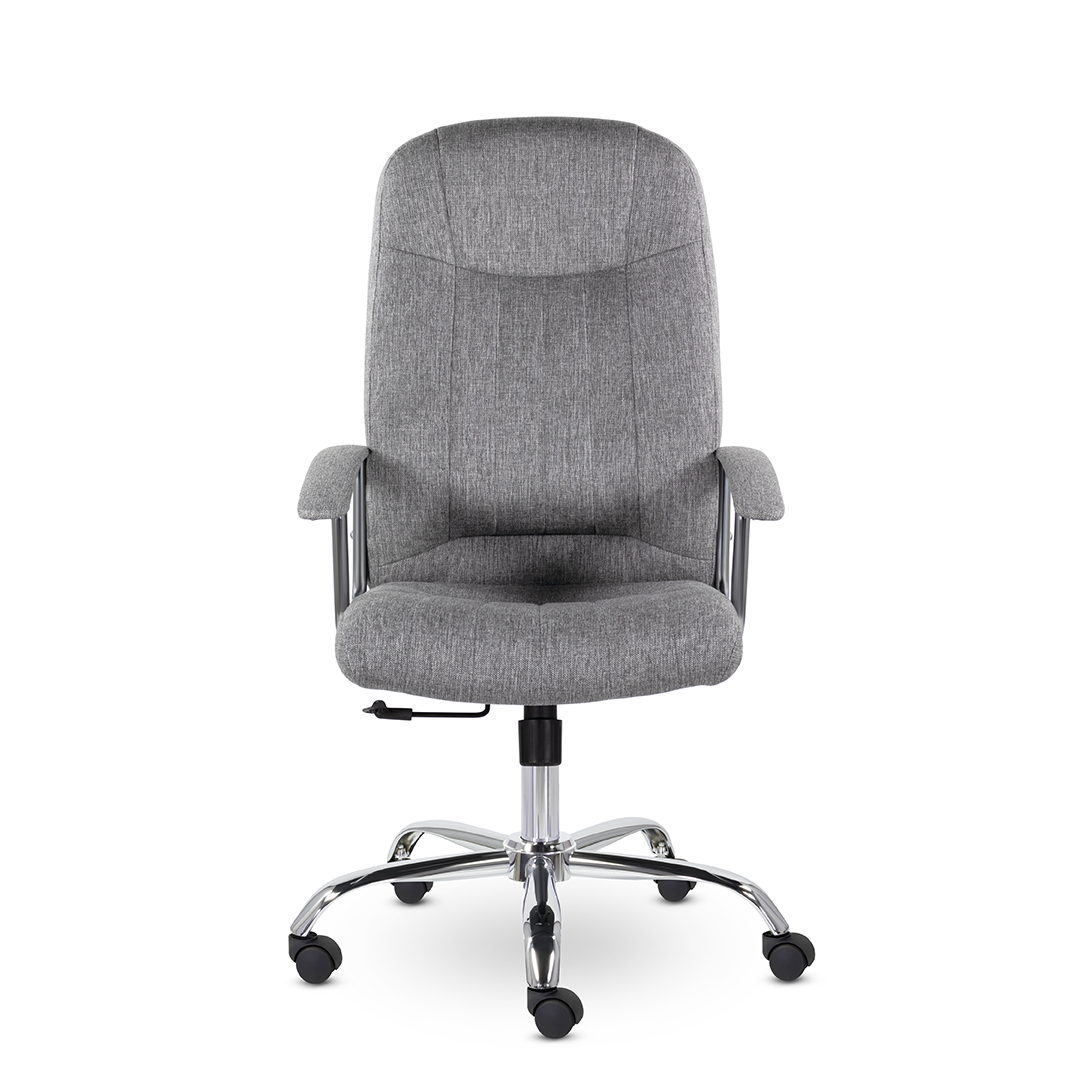 Кресло руководителя с мягкими увеличенными подушками. Широкая эргономичная спинка имеет две горизонтальные прострочки, которые отделяют подголовник от основной части спинки. Благодаря глубокому сиденью, в кресле будет удобно человеку среднего и высокого роста. Длинные хромированные подлокотники способствуют комфортной посадке в кресле. Максимальная нагрузка до 180 кг.