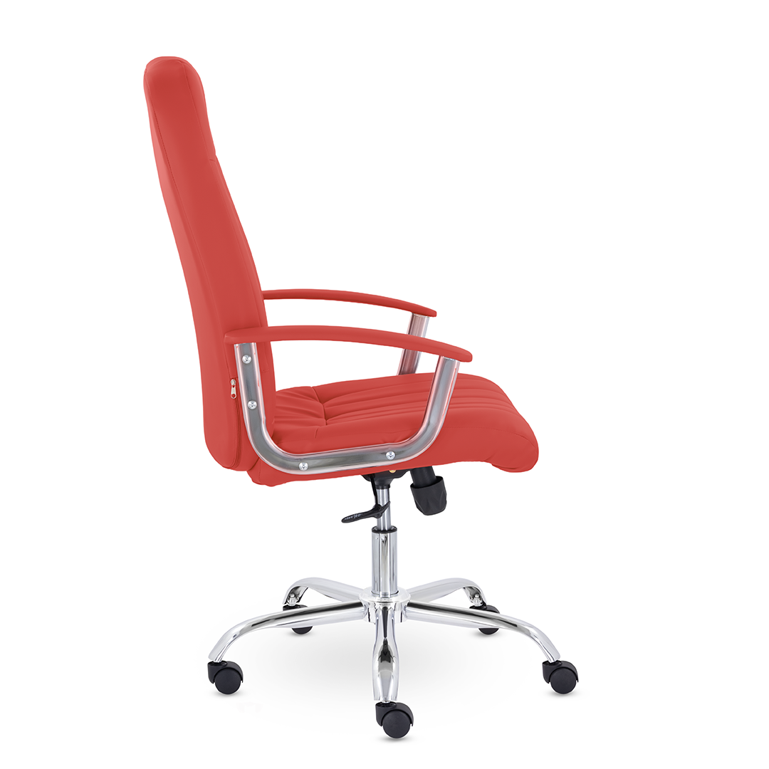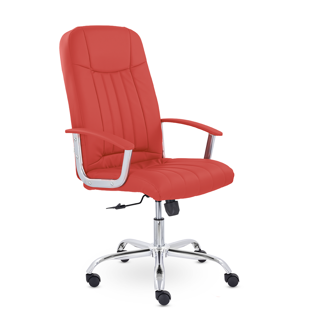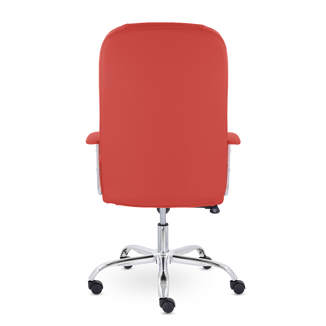 Кресло руководителя с мягкими увеличенными подушками. Широкая эргономичная спинка имеет две горизонтальные прострочки, которые отделяют подголовник от основной части спинки. Благодаря глубокому сиденью, в кресле будет удобно человеку среднего и высокого роста. Длинные хромированные подлокотники способствуют комфортной посадке в кресле. Максимальная нагрузка до 180 кг.