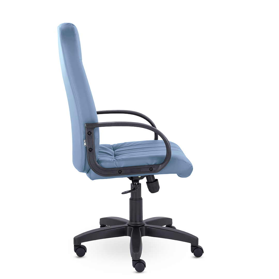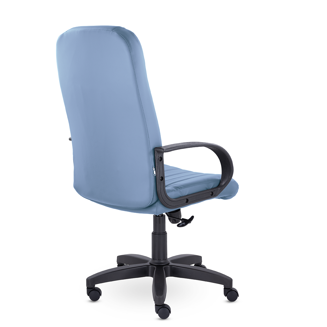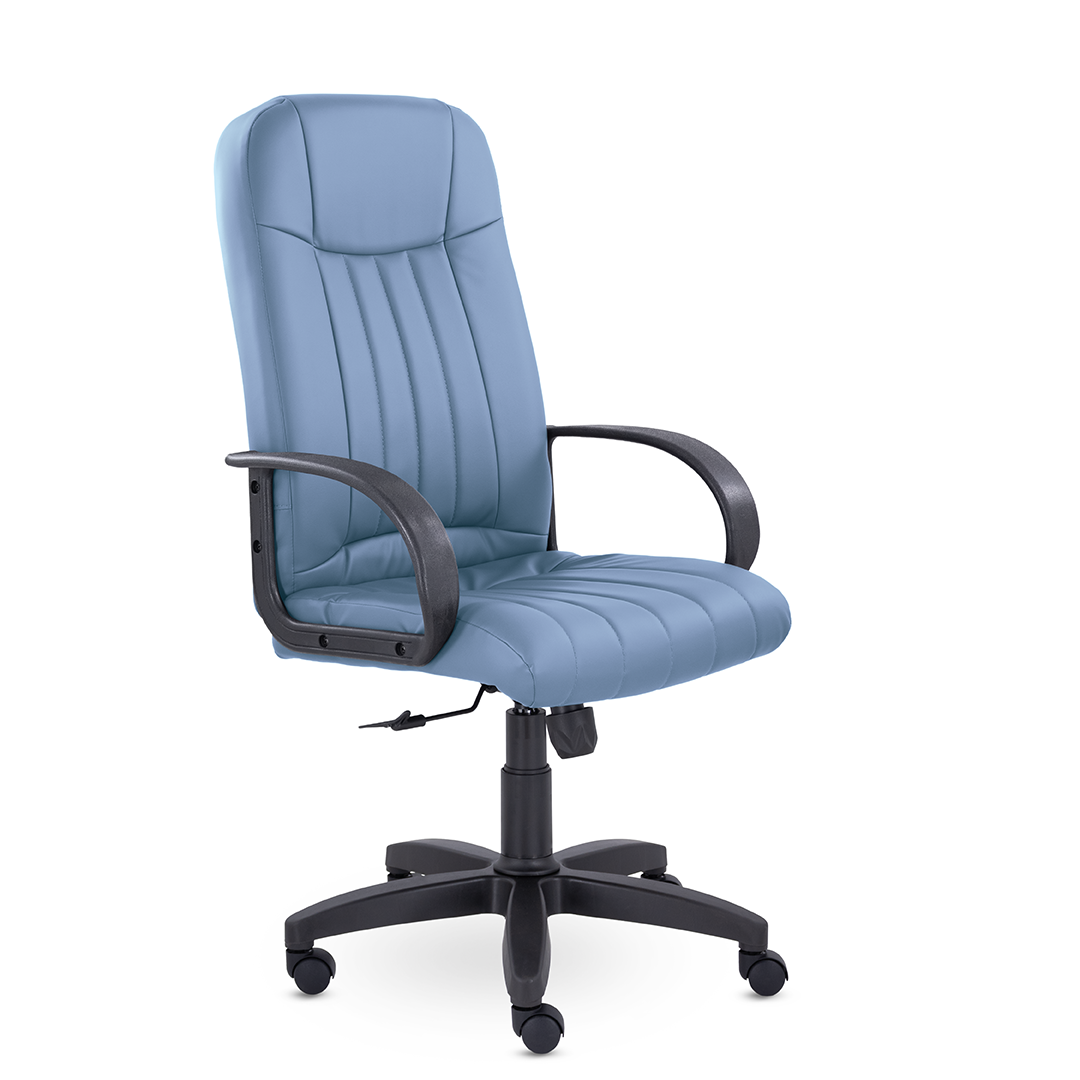 Кресло руководителя с мягкими увеличенными подушками. Широкая эргономичная спинка имеет две горизонтальные прострочки, которые отделяют подголовник от основной части спинки. Благодаря глубокому сиденью, в кресле будет удобно человеку среднего и высокого роста. Длинные пластиковые подлокотники способствуют комфортной посадке в кресле.