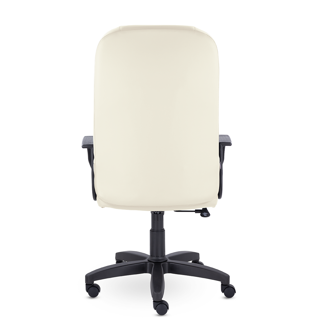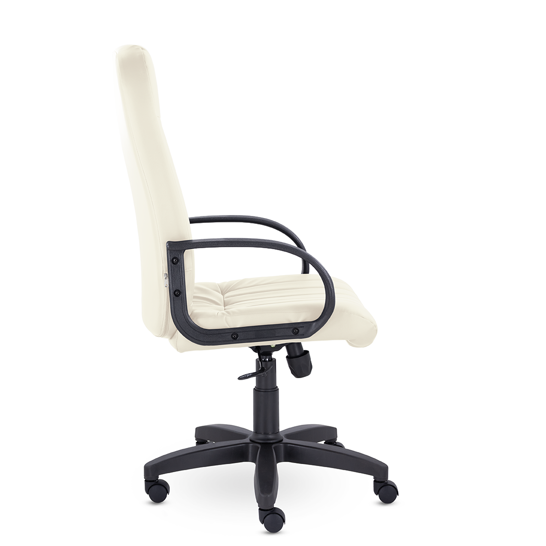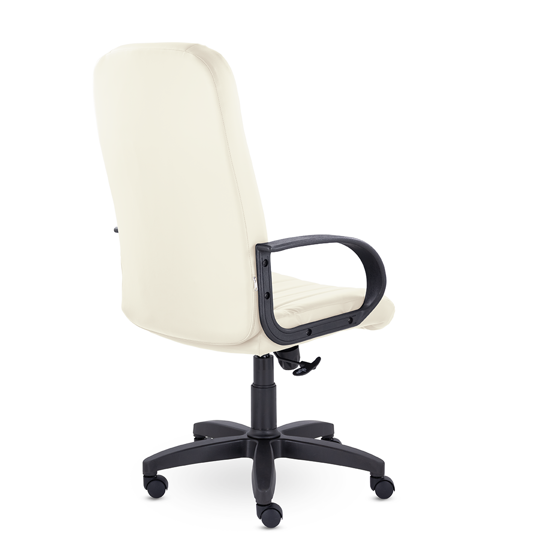 Кресло руководителя с мягкими увеличенными подушками. Широкая эргономичная спинка имеет две горизонтальные прострочки, которые отделяют подголовник от основной части спинки. Благодаря глубокому сиденью, в кресле будет удобно человеку среднего и высокого роста. Длинные пластиковые подлокотники способствуют комфортной посадке в кресле.