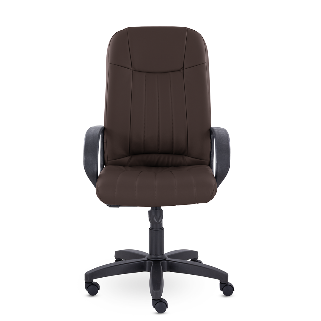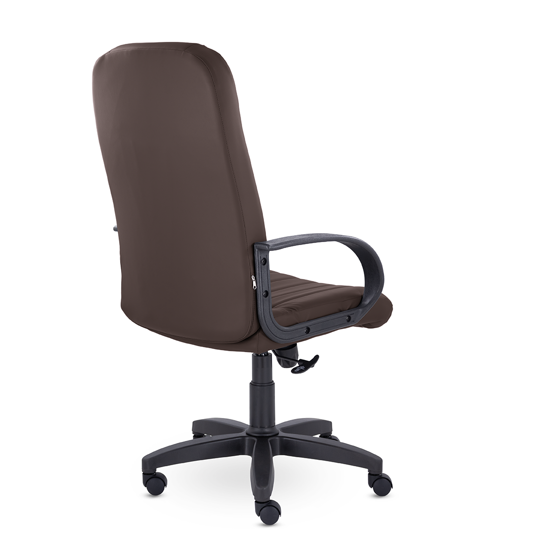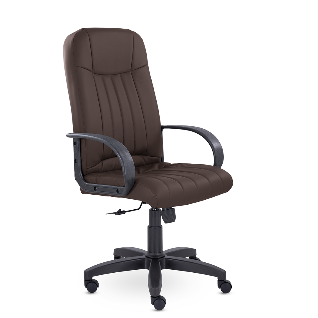 Кресло руководителя с мягкими увеличенными подушками. Широкая эргономичная спинка имеет две горизонтальные прострочки, которые отделяют подголовник от основной части спинки. Благодаря глубокому сиденью, в кресле будет удобно человеку среднего и высокого роста. Длинные пластиковые подлокотники способствуют комфортной посадке в кресле.