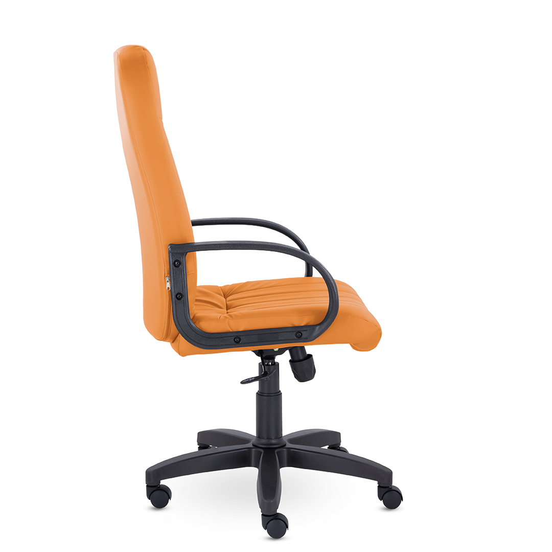Кресло руководителя с мягкими увеличенными подушками. Широкая эргономичная спинка имеет две горизонтальные прострочки, которые отделяют подголовник от основной части спинки. Благодаря глубокому сиденью, в кресле будет удобно человеку среднего и высокого роста. Длинные пластиковые подлокотники способствуют комфортной посадке в кресле.