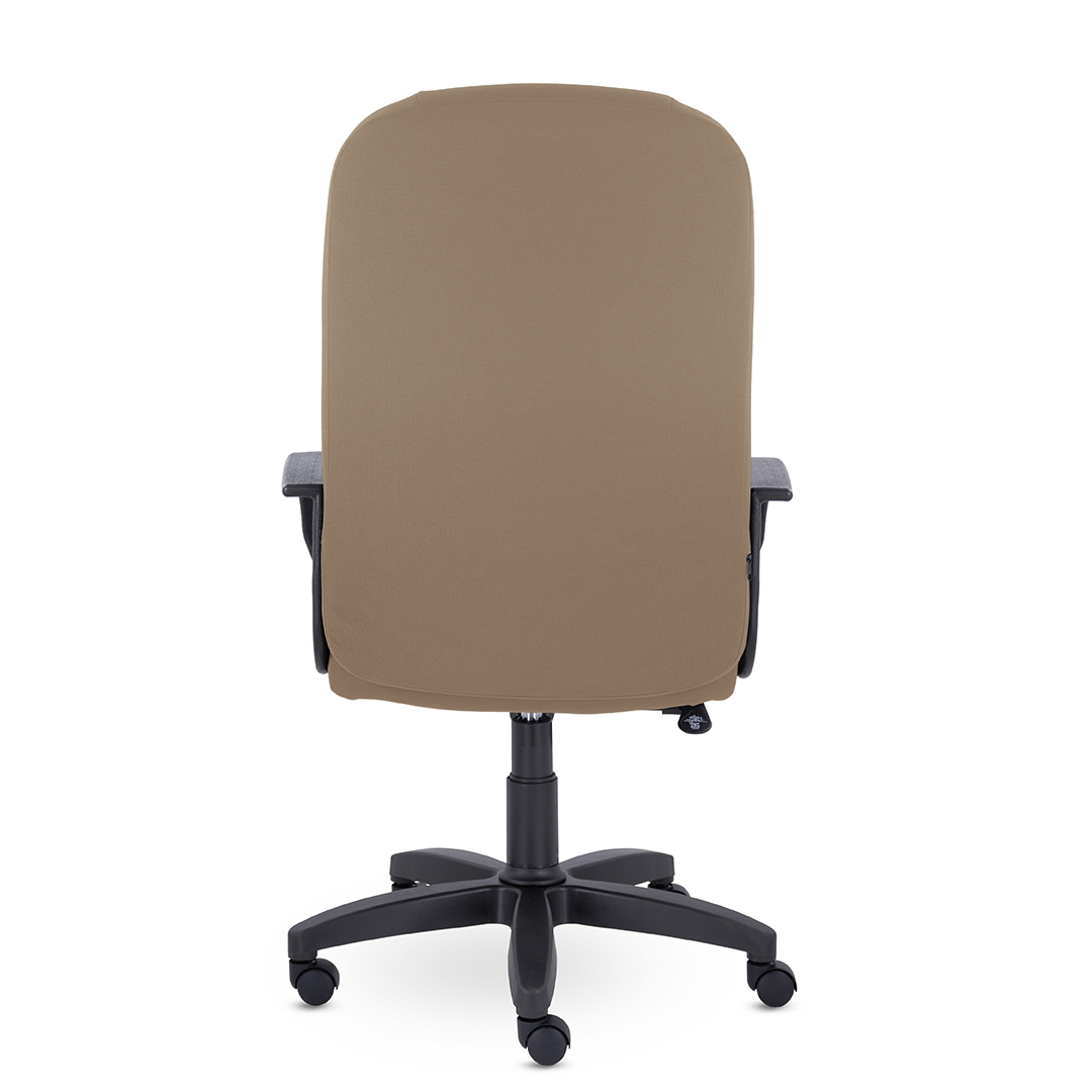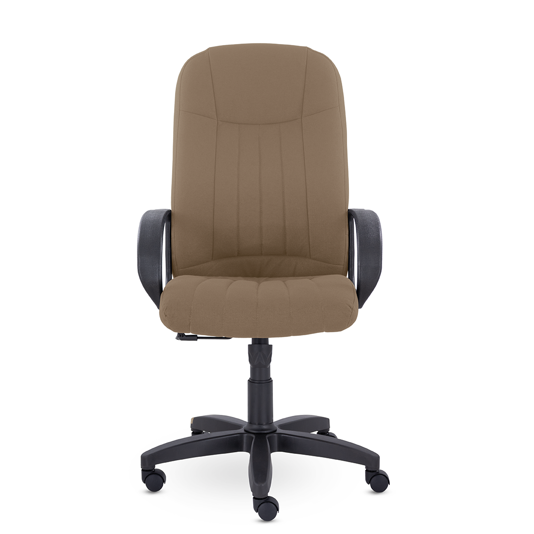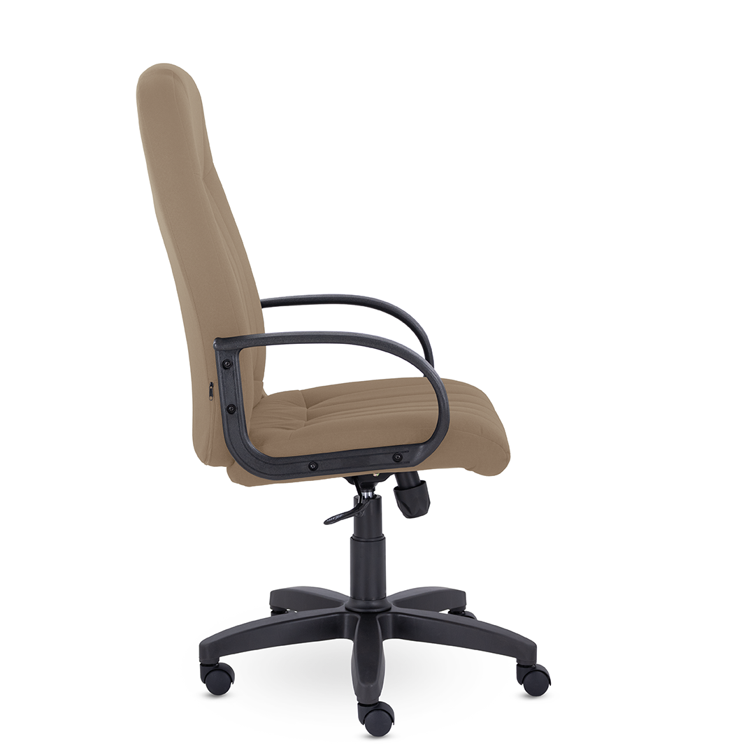 Кресло руководителя с мягкими увеличенными подушками. Широкая эргономичная спинка имеет две горизонтальные прострочки, которые отделяют подголовник от основной части спинки. Благодаря глубокому сиденью, в кресле будет удобно человеку среднего и высокого роста. Длинные пластиковые подлокотники способствуют комфортной посадке в кресле.