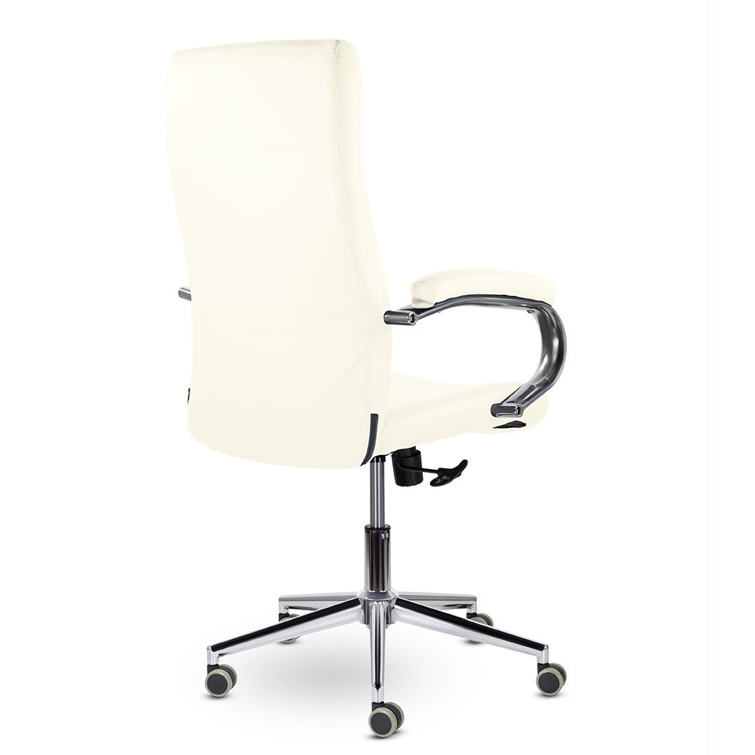 Элегантная модель для современных офисов, кабинетов и пространств. Высокая эргономичная спинка обеспечивает поддержку спины на протяжении всего рабочего дня, а широкое сидение - комфортную посадку. Хромированные подлокотники с мягкими накладками. Максимальная нагрузка 180 кг.