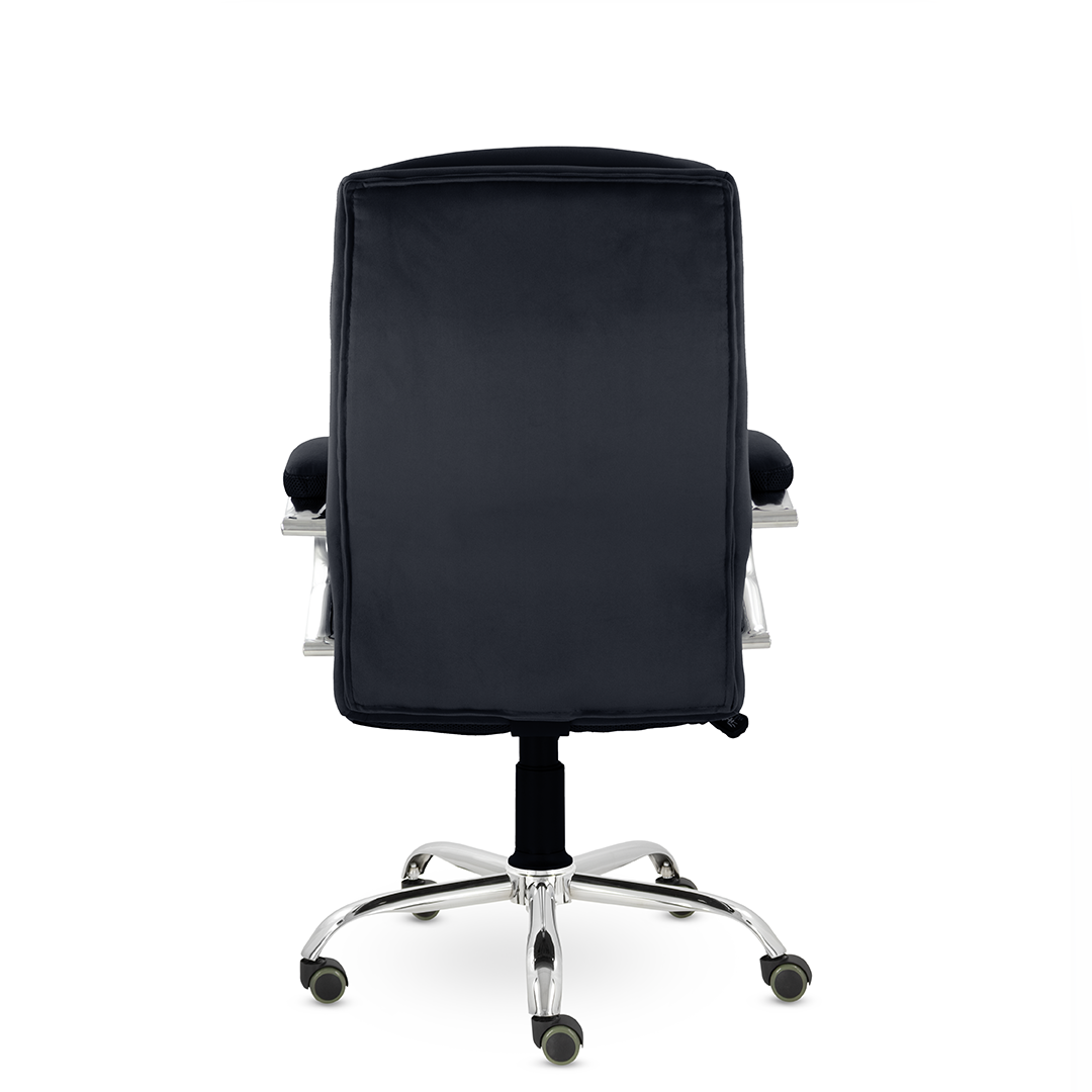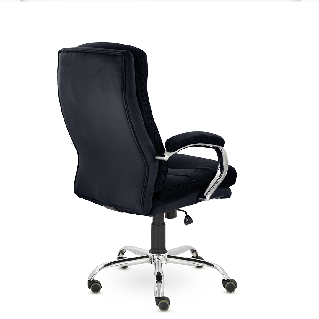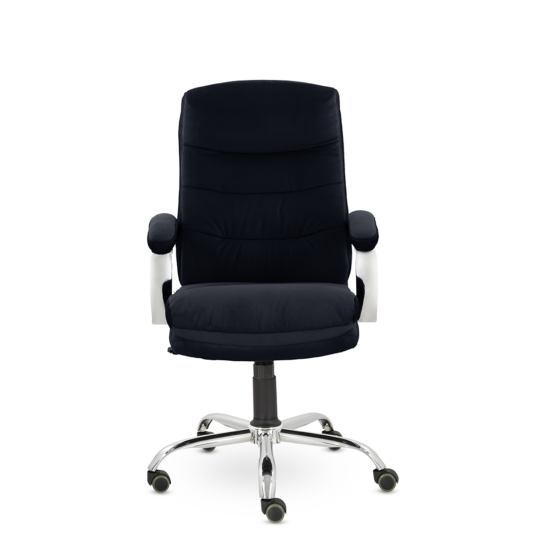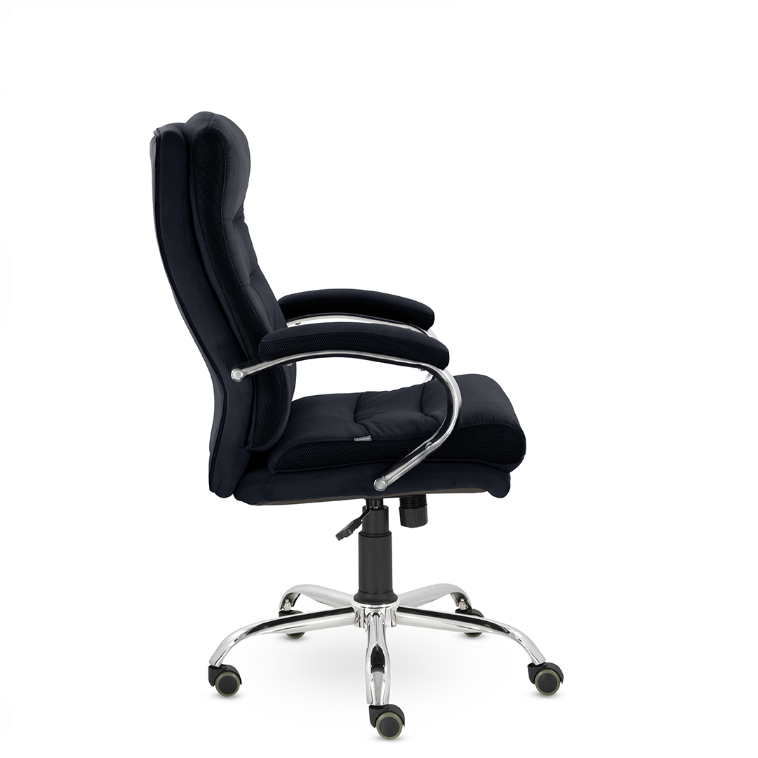 Прекрасное сочетание обивочных материалов между собой, которое дополняют хромированные элементы. Прострочки на спинке выделяют подголовник, мягкие накладки на подлокотниках способствуют удобному положению сидящего. Кресло руководителя стоит на усиленной крестовине. Максимальная нагрузка до 180 кг.