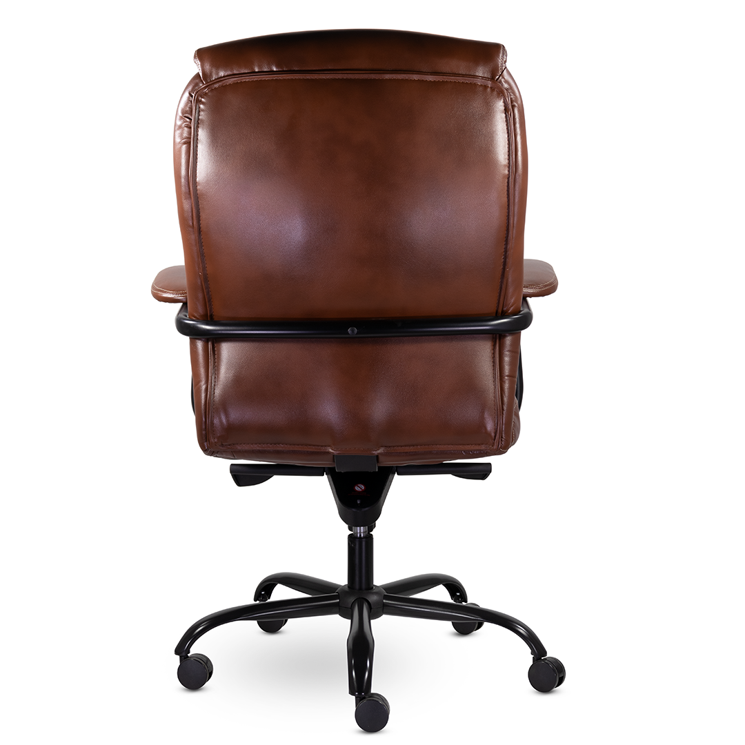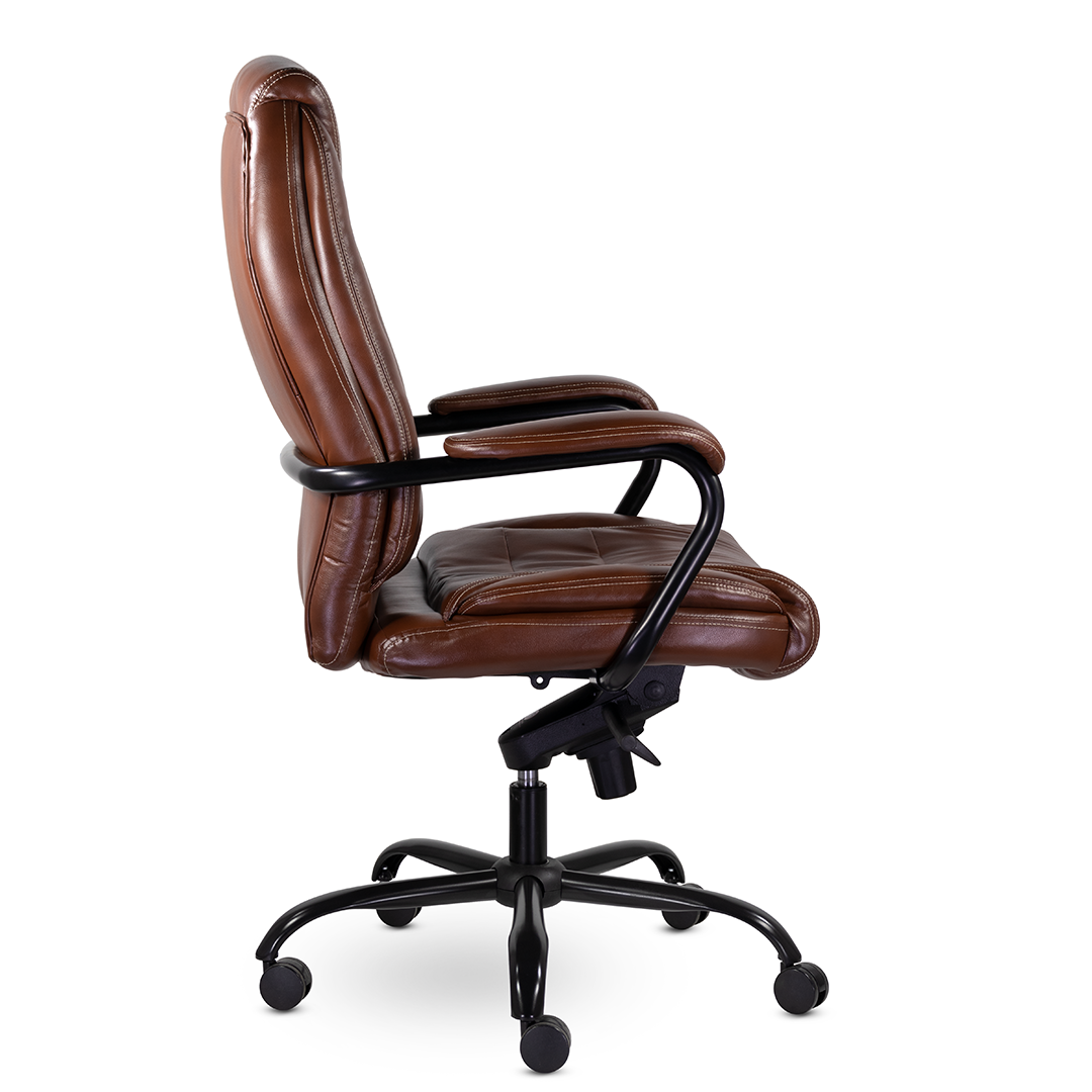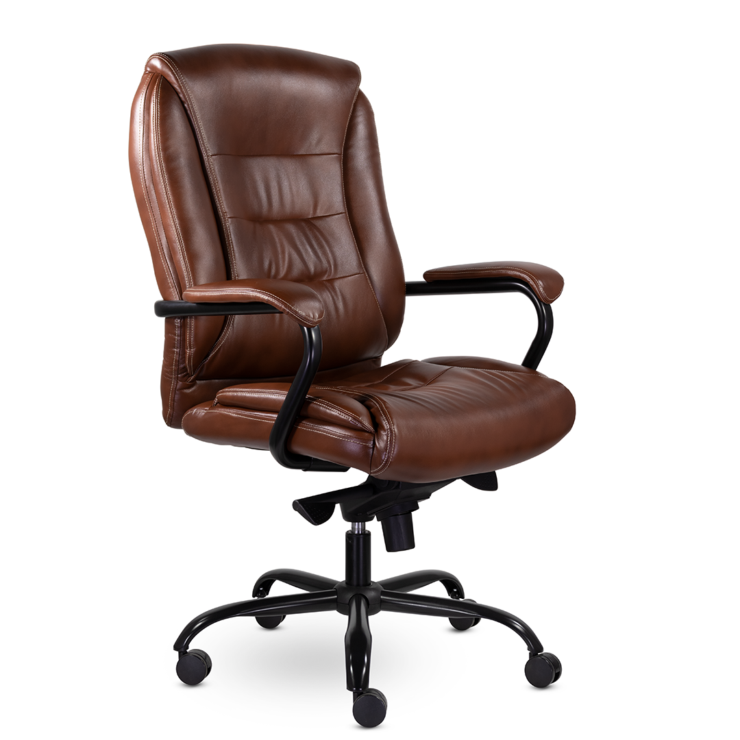 Массивное кресло руководителя с широкой эргономичной спинкой и поясничной поддержкой. Кресло оснащено увеличенными мягкими подушками на спинке и сидении, подголовник ярко выражен. Усиление каркаса выполнено за счет металлической рамы, переходящей из-под сидения за спинку кресла. Механизм качания - мультиблок. Жесткость хода свободного отклонения спинки регулируется пружинным блоком. Кресло имеет повышенную нагрузку до 210 кг. Разнообразная палитра цветов обивочного материала.
