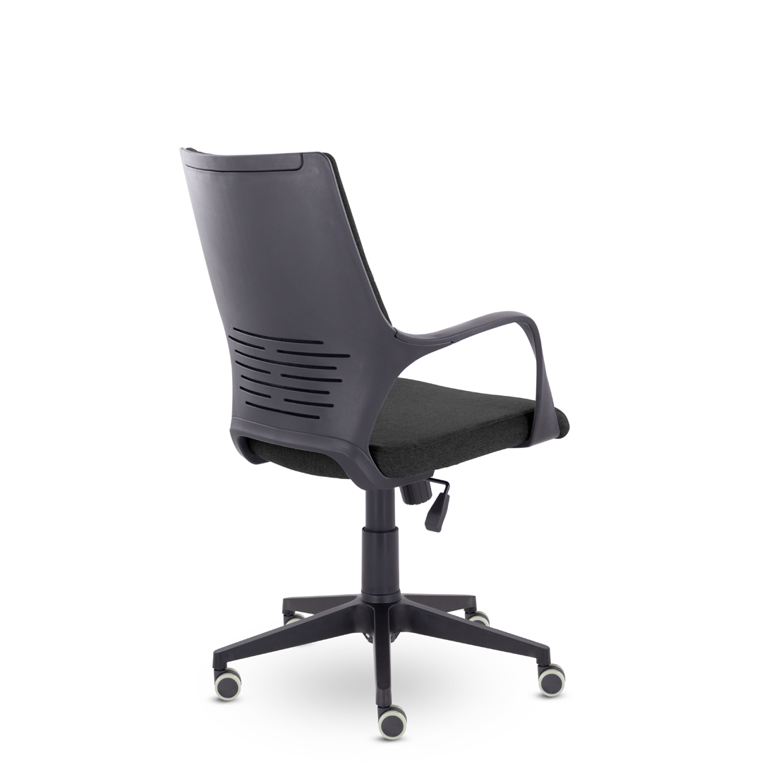 Современное кресло в стиле хай-тек. Мягкие элементы спинки кресла расположены в трех зонах, соприкасаясь с которыми спина сидящего человека находится в положении максимального комфорта. Изящные подлокотники идеально вписываются в общую конструкцию кресла. Кресло изготавливается в любом цвете тканях D, QH и в экокоже Santorini. Максимальная нагрузка до 150 кг.