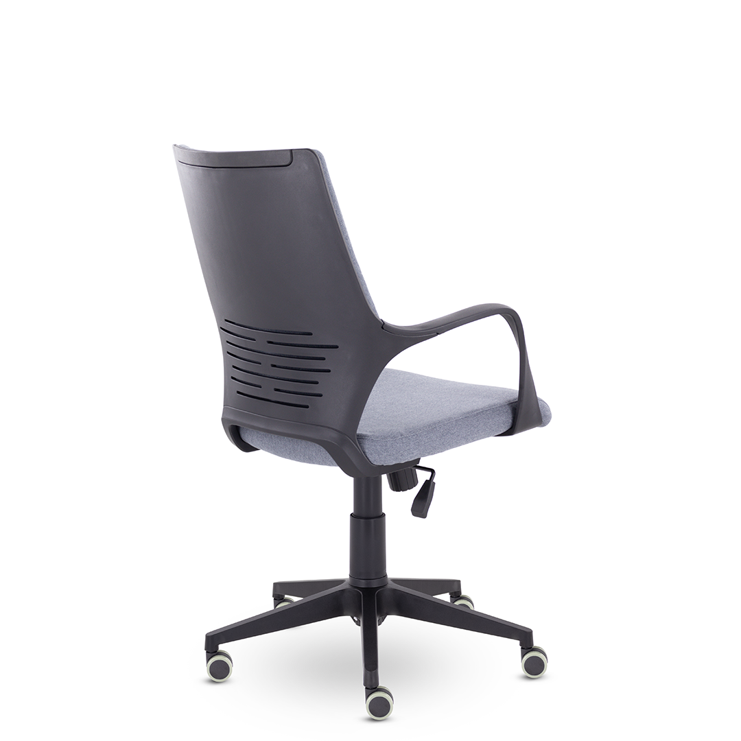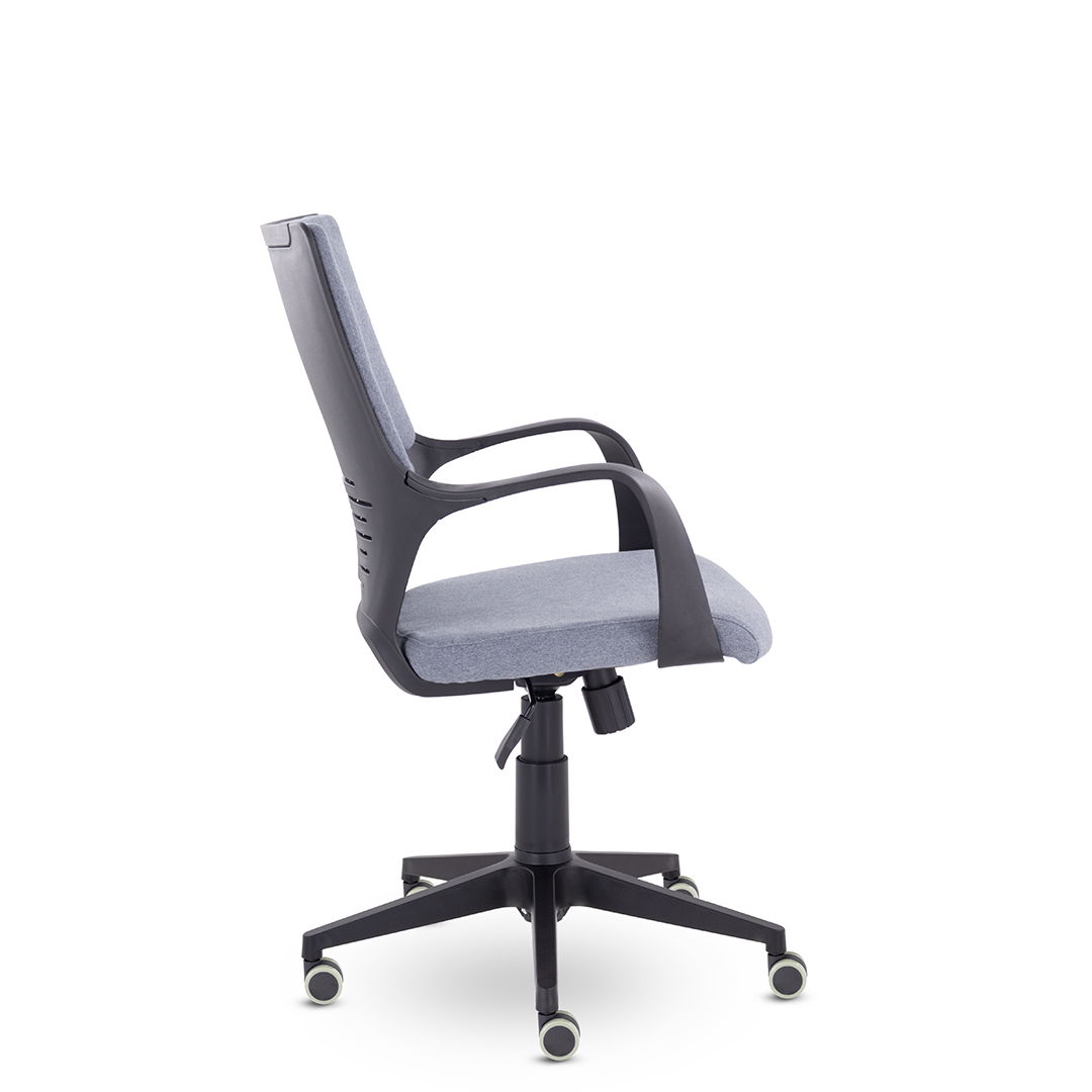 Современное кресло в стиле хай-тек. Мягкие элементы спинки кресла расположены в трех зонах, соприкасаясь с которыми спина сидящего человека находится в положении максимального комфорта. Изящные подлокотники идеально вписываются в общую конструкцию кресла. Кресло изготавливается в любом цвете тканях D, QH и в экокоже Santorini. Максимальная нагрузка до 150 кг.