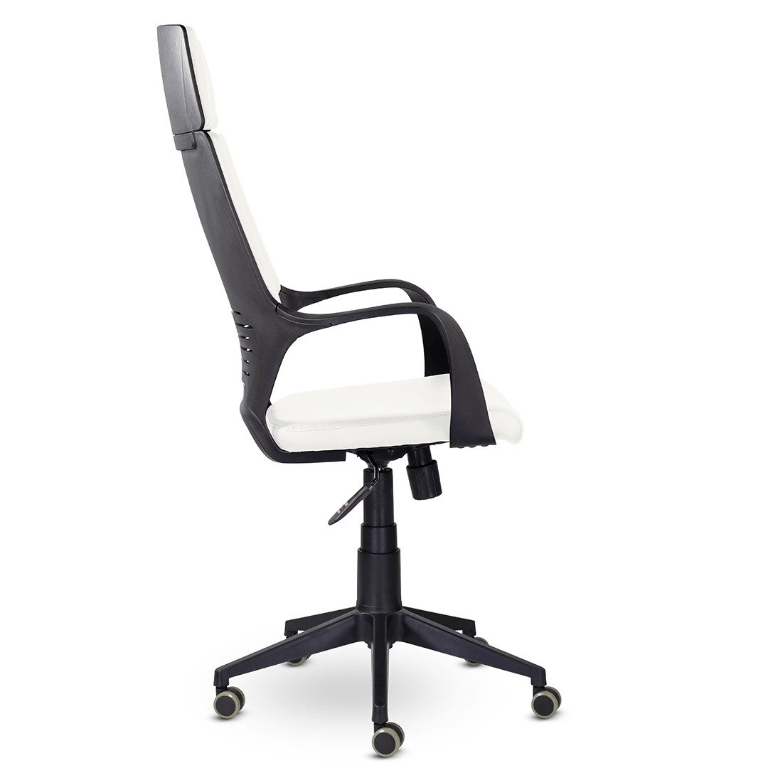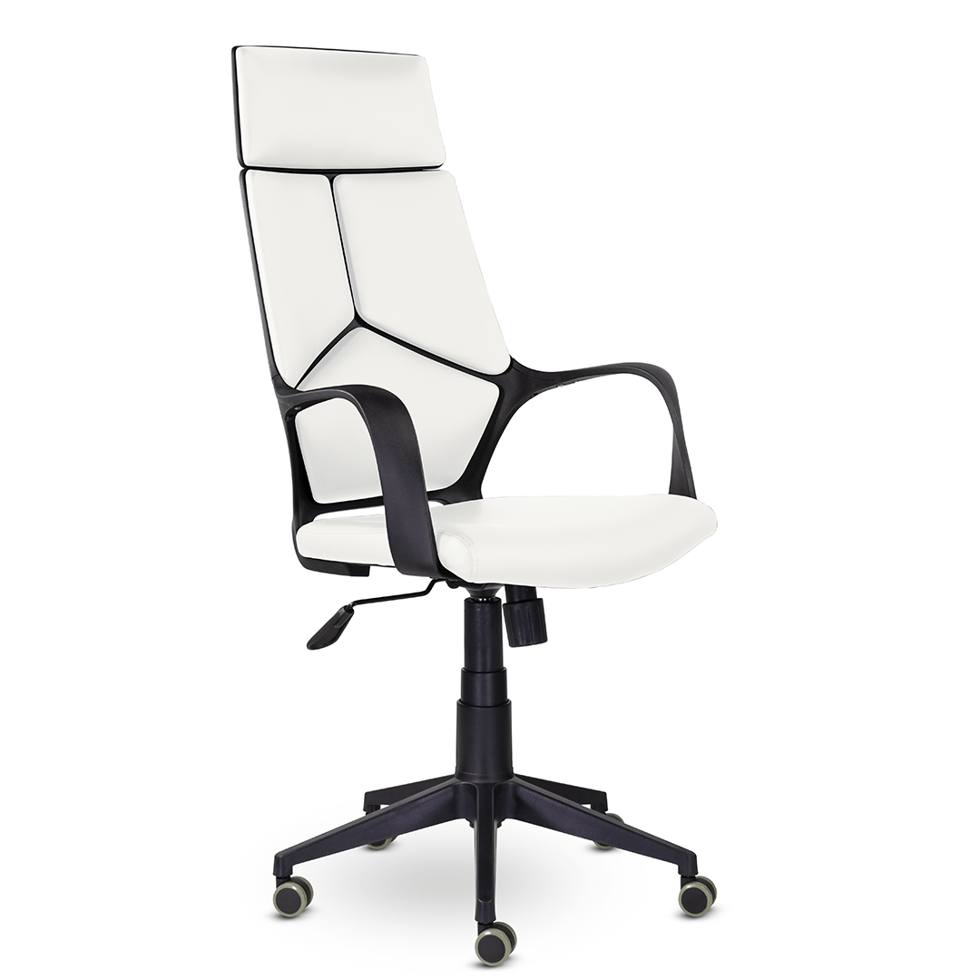 Современное кресло в стиле хай-тек. Мягкие элементы спинки кресла расположены в четырех зонах, соприкасаясь с которыми спина сидящего человека находится в положении максимального комфорта. Изящные подлокотники идеально вписываются в общую конструкцию кресла. Кресло изготавливается в любом цвете тканях D, QH и в экокоже Santorini. Максимальная нагрузка до 150 кг.