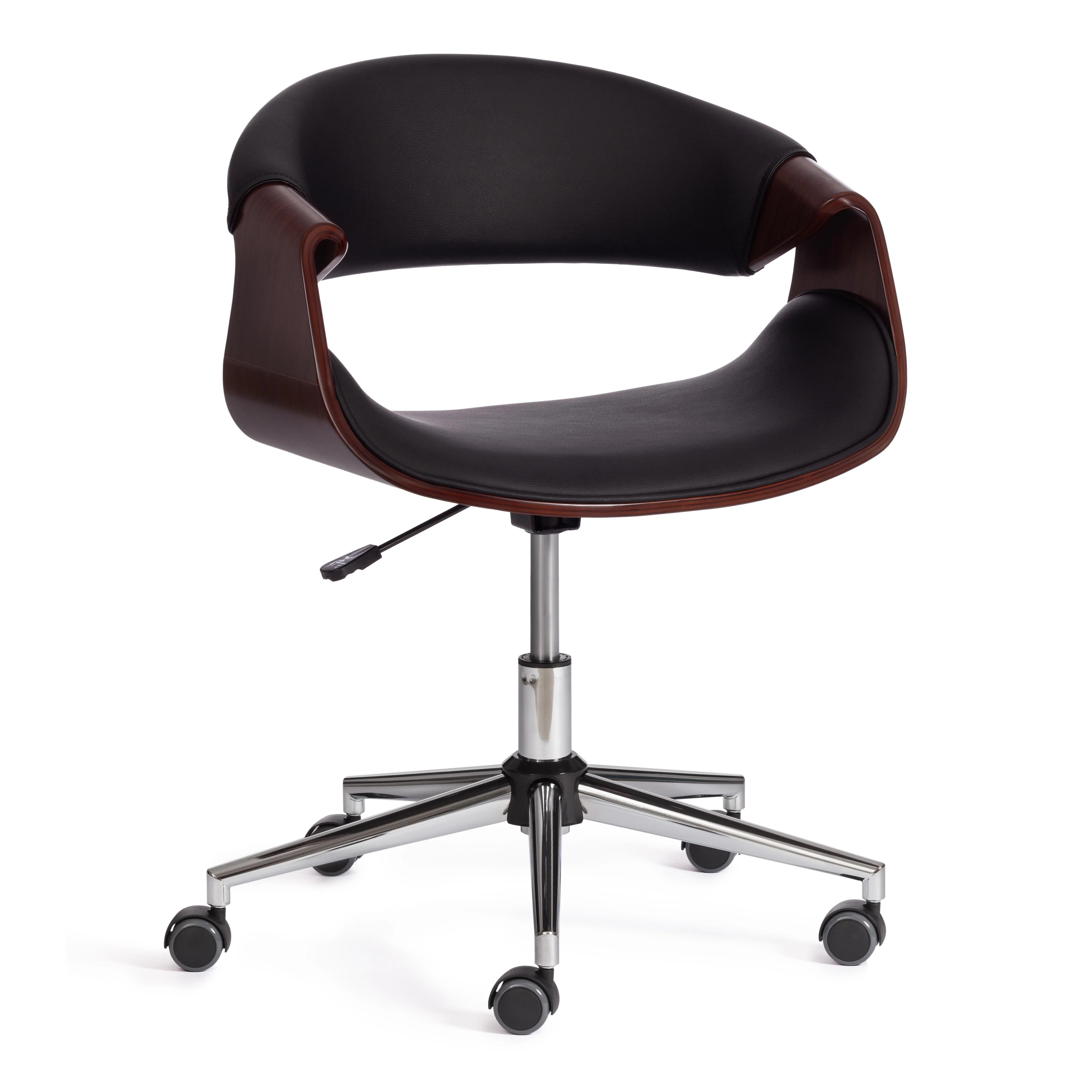 Элегантное и надежное кресло BEND из коллекции OFFICE - показатель безупречного вкуса своего владельца. Уникальная модель прекрасно впишется в дизайн офиса или дома. Деревянный каркас из шпонированной фанеры и обивка из искусственной кожи – удачное сочетание надежности и элегантности. Искусственная кожа гипоаллергенна, износостойка и проста в уходе. Сиденье с мягким наполнителем из пенополиуретана стандартной плотности пропускает воздух, не накапливает пыль, не деформируется на протяжении длительного времени. Для принятия удобной позы кресло регулируется по высоте. Деревянные подлокотники необычной формы помогут уменьшить дискомфорт в плечах и шее при длительной работе, а также комфортно расположиться у стола. Металлическая хромированная крестовина диаметром 640 мм обеспечивает устойчивость и безопасность модели. Сочетание каркаса натурального оттенка с белым сиденьем и спинкой выглядит привлекательно и эстетично. Наличие высококачественных полиамидных роликов позволяет легко передвигаться на кресле, даже не вставая с него. Колесики подходят для использования на низковорсовых ковровых покрытиях и на специальных защитных поверхностях. Модель BEND отличается повышенным комфортом и презентабельным внешним видом, удивит владельца своей долговечностью и надежностью. Максимальная нагрузка кресла 120 кг. Кресло поставляется в разобранном виде. Инструкция по сборке прилагается.