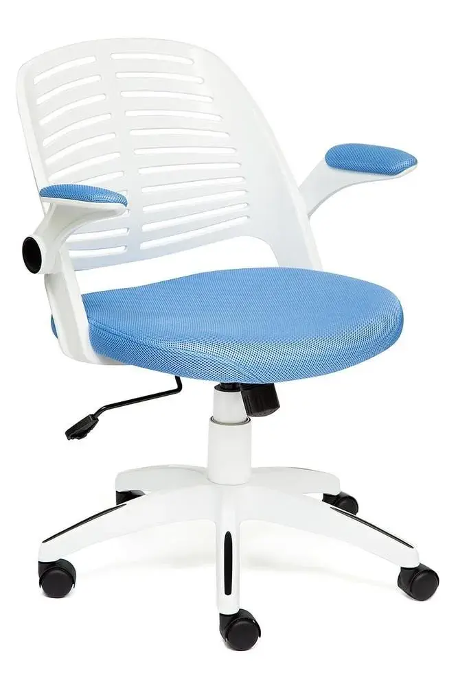 Уникальное кресло JOY – это оригинальное и яркое решение для детской комнаты. Функциональная модель будет удачно смотреться как в рабочем кабинете, так и в детской комнате. Пластиковые подлокотники с мягкими накладками откидываются наверх. Такая функция позволяет задвигать модель под любой стол. Каркас из белого пластика прекрасно сочетается с черными вставками, что делает модель уникальной и привлекательной. Прочная крестовина диаметром 640 мм изготовлена из полиамида, устойчива к жесткой эксплуатации, проста в уходе. Сиденье с мягким наполнителем из пенополиуретана стандартной плотности с сетчатой обивкой долговечно, надежно и износостойко. Удобная слегка выгнутая спинка позволяет расположиться с комфортом и снизить напряжение на позвоночник. Высота и наклон с фиксацией регулируются при помощи основательного механизма. Контрастное сочетание белого пластика с обивкой сиденья синего цвета выглядит выразительно и привлекательно. Высококачественные полиамидные ролики позволяют бесшумно перемещать кресло с места на место, подходят для использования на коврах с низким ворсом и на специальных защитных поверхностях. Кресло JOY идеально впишется в любой современный интерьер и станет его ярким акцентом. Модель поставляется в разобранном виде. Необходима несложная сборка по прилагаемой инструкции. Максимальная нагрузка кресла 120 кг.
