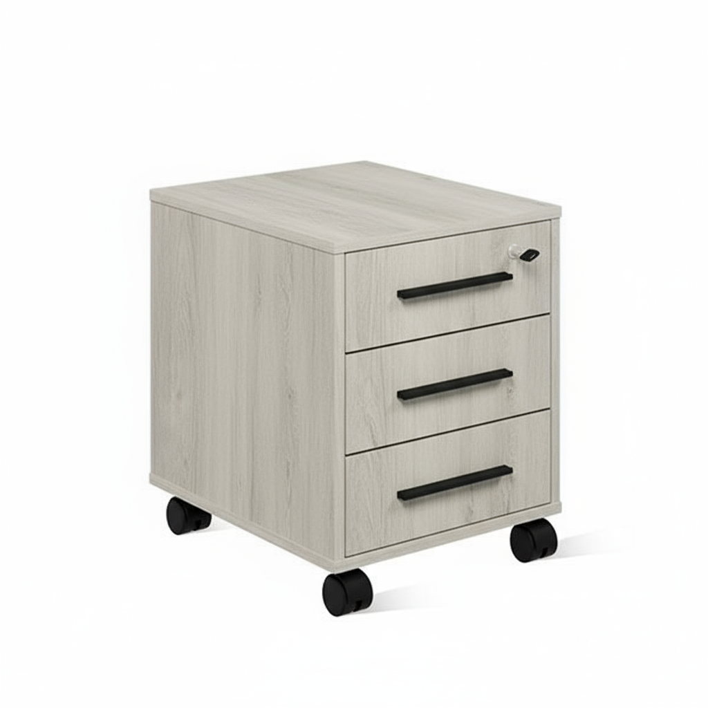 Идеальное решение для создания более функционального и удобного рабочего места. Колёсные опоры облегчают перемещение мебели по комнате и её установку под стол. Верхний выдвижной ящик оснащён встроенным замком, который надёжно защищает личные вещи и документы. В комплекте с замком идёт ключ. Чёрные металлические ручки не только добавляют тумбе стильный вид, но и обеспечивают комфортное использование.
