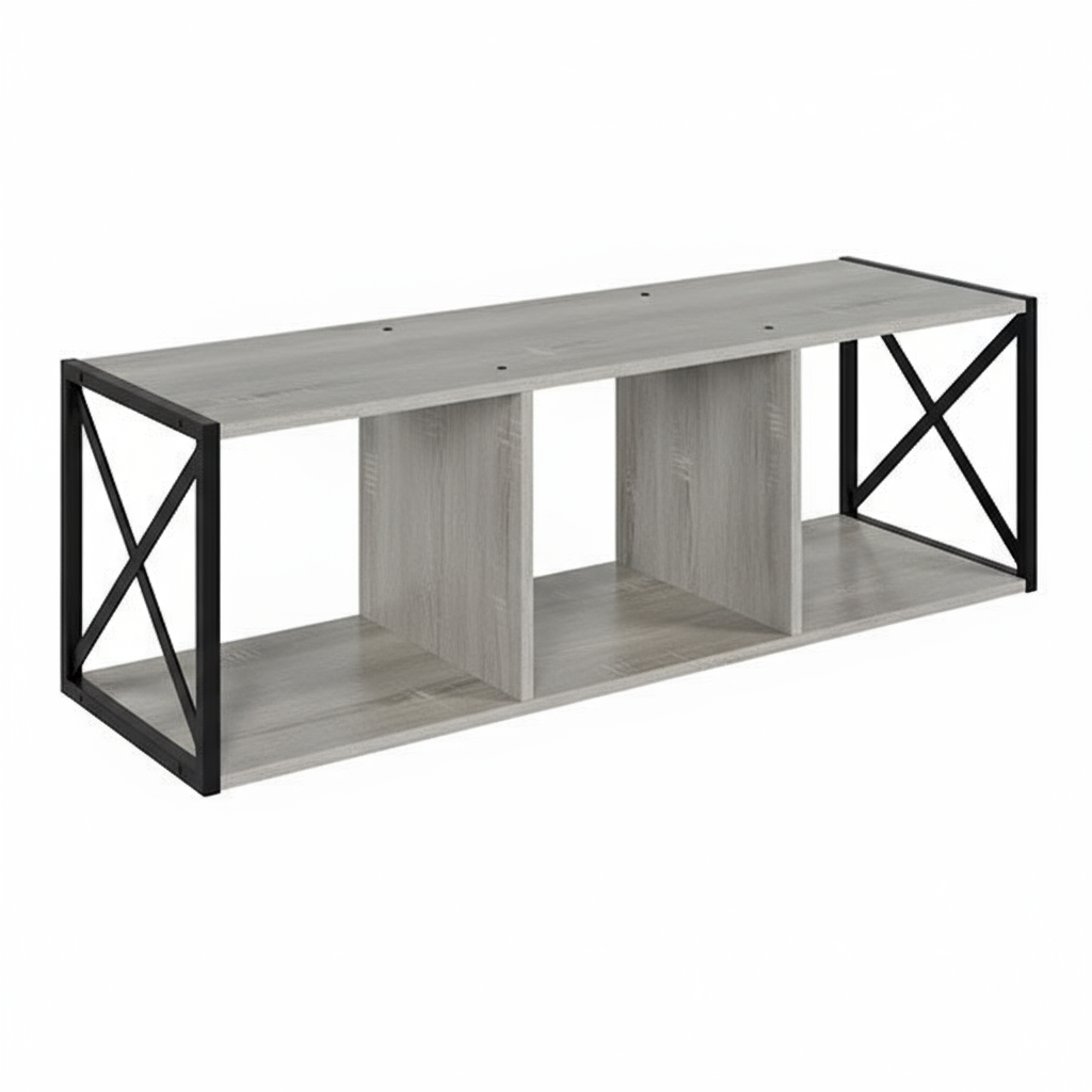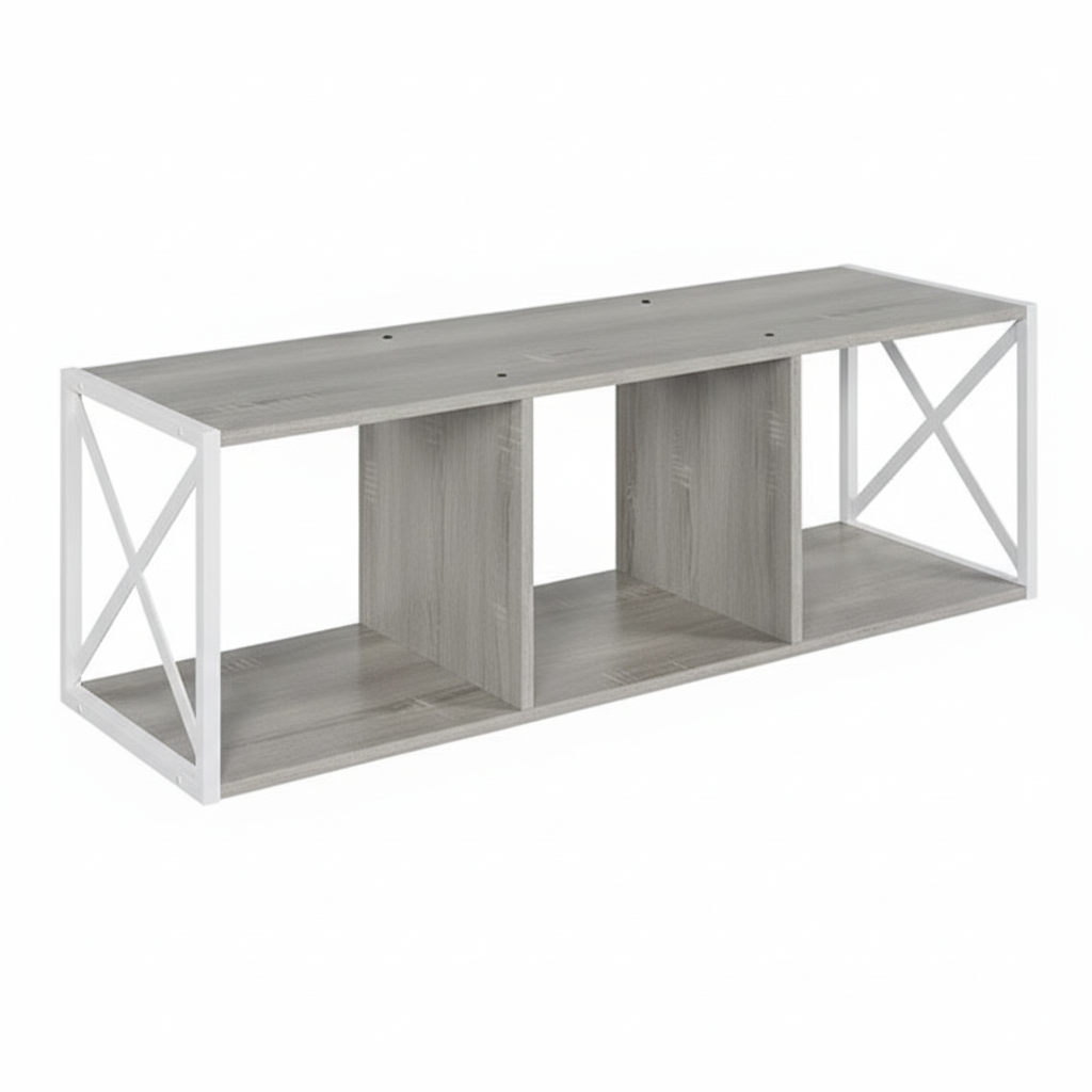 Это отличное решение для организации пространства и экономии места. Настенный модуль хорошо сочетается с письменными столами серии ЛОФТ и может использоваться самостоятельно для украшения интерьера. Полка изготовлена из прочного ЛДСП и состоит из трех секций. Графичность навесного элемента подчеркивают боковые металлические стенки с иксообразными элементами, покрытые черной матовой краской.