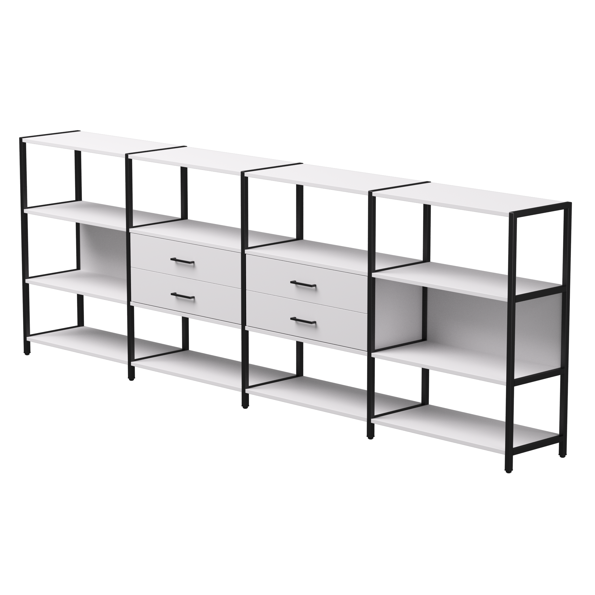 Материал каркаса | Металл; Цвет каркаса | Черный; Длина | 3245 мм; Ширина | 385 мм; Высота | 1120 мм; Вес | 174,1 кг; Надставка/полка | ЛДСП Белый; Ящики | Модуль с ящиками;