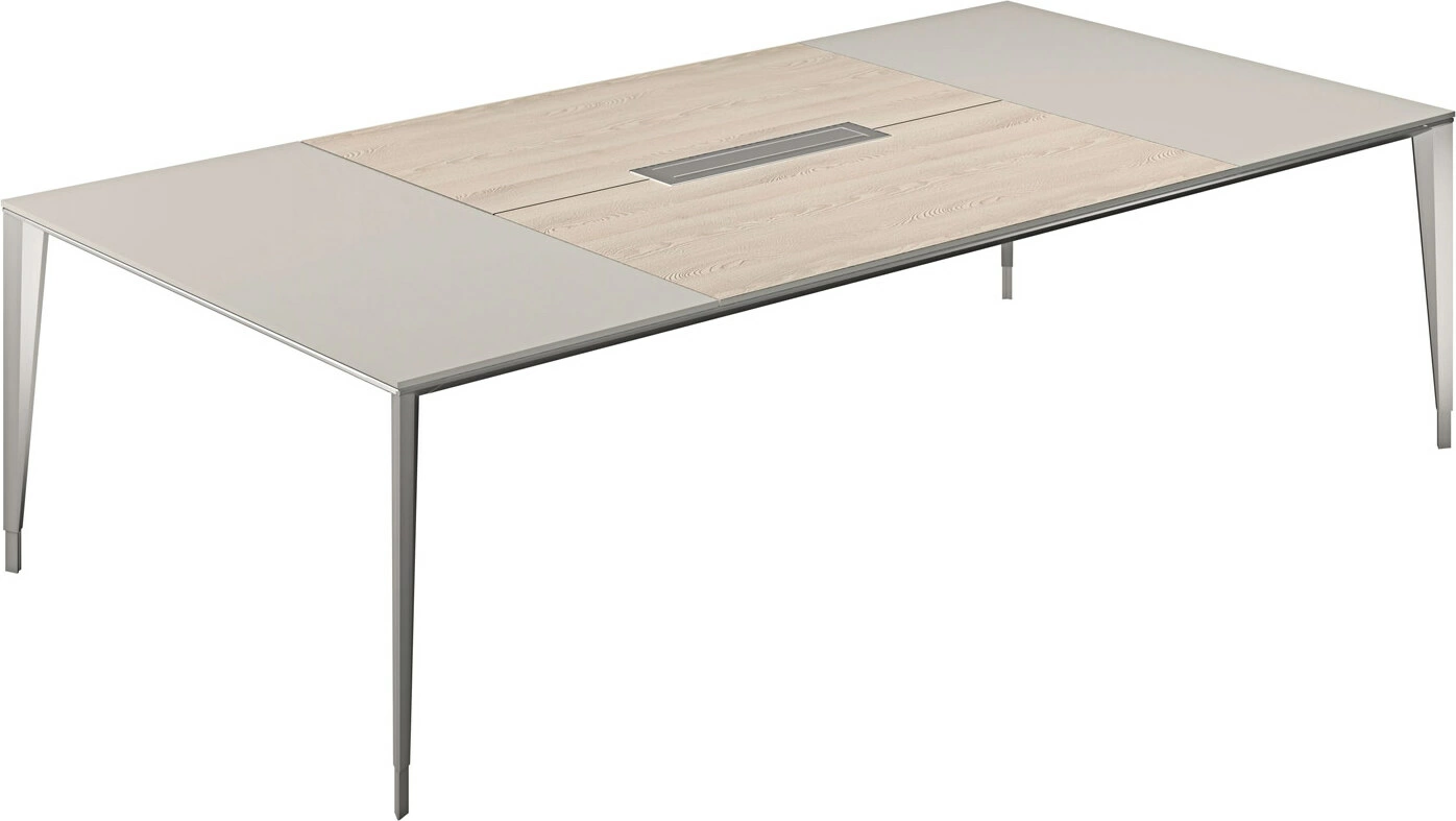 NZ-0104.GS.YN.AL / Стол конференц домино вдоль 2800х1400х725 серый камень, мк алюминий / цвет: серый камень, центр ясень наварра, мк алюминий