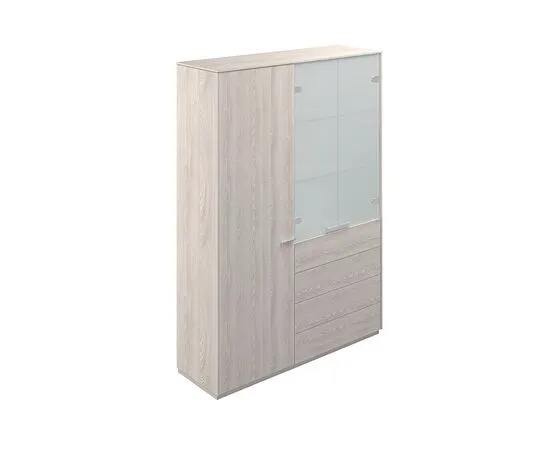 NZ-0303+NZ-0312.YN.GS / Шкаф для одежды 600 и Шкаф высокий 800 со стеклом мат., 4 ящ., обвязка YN, фасады GS / 1424х450х1976, обвязка YN, фасады GS, стекло матовое GLM