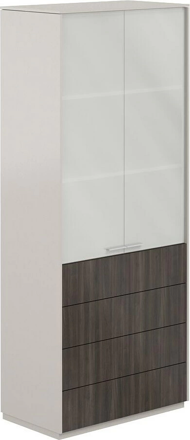 NZ-0312.GS.BT / Шкаф высокий со стеклом мат., 4 ящ., обвязка GS, фасады BT / 824х450х1976, обвязка GS, фасады BT, стекло матовое GLM