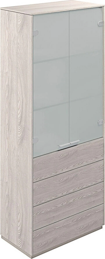 NZ-0312.YN.YN / Шкаф высокий со стеклом мат., 4 ящ., обвязка YN, фасады YN / 824х450х1976, обвязка YN, фасады YN, стекло матовое GLM