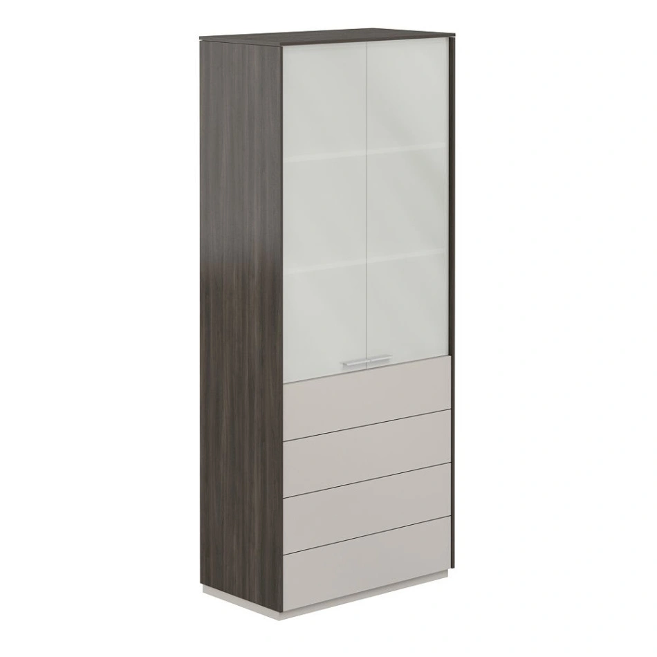 NZ-0332.BT.GS / Шкаф высокий со стеклом мат., 4 ящ., обвязка BT, фасады GS / 824х450х1976, обвязка BT, фасады GS, стекло матовое GLM