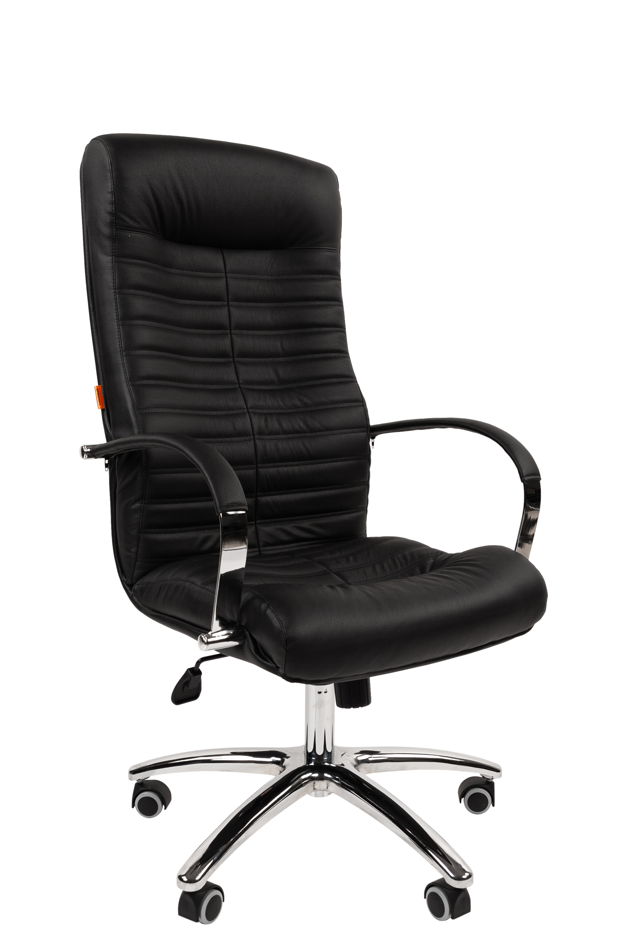 Стильное, необычное кресло руководителя. Его горизонтальный геометрический рисунок эффектно оттеняется хромированными элементами конструкции, а высокая эргономика достигается за счет анатомической формы и механизма качания повышенной комфортности.
