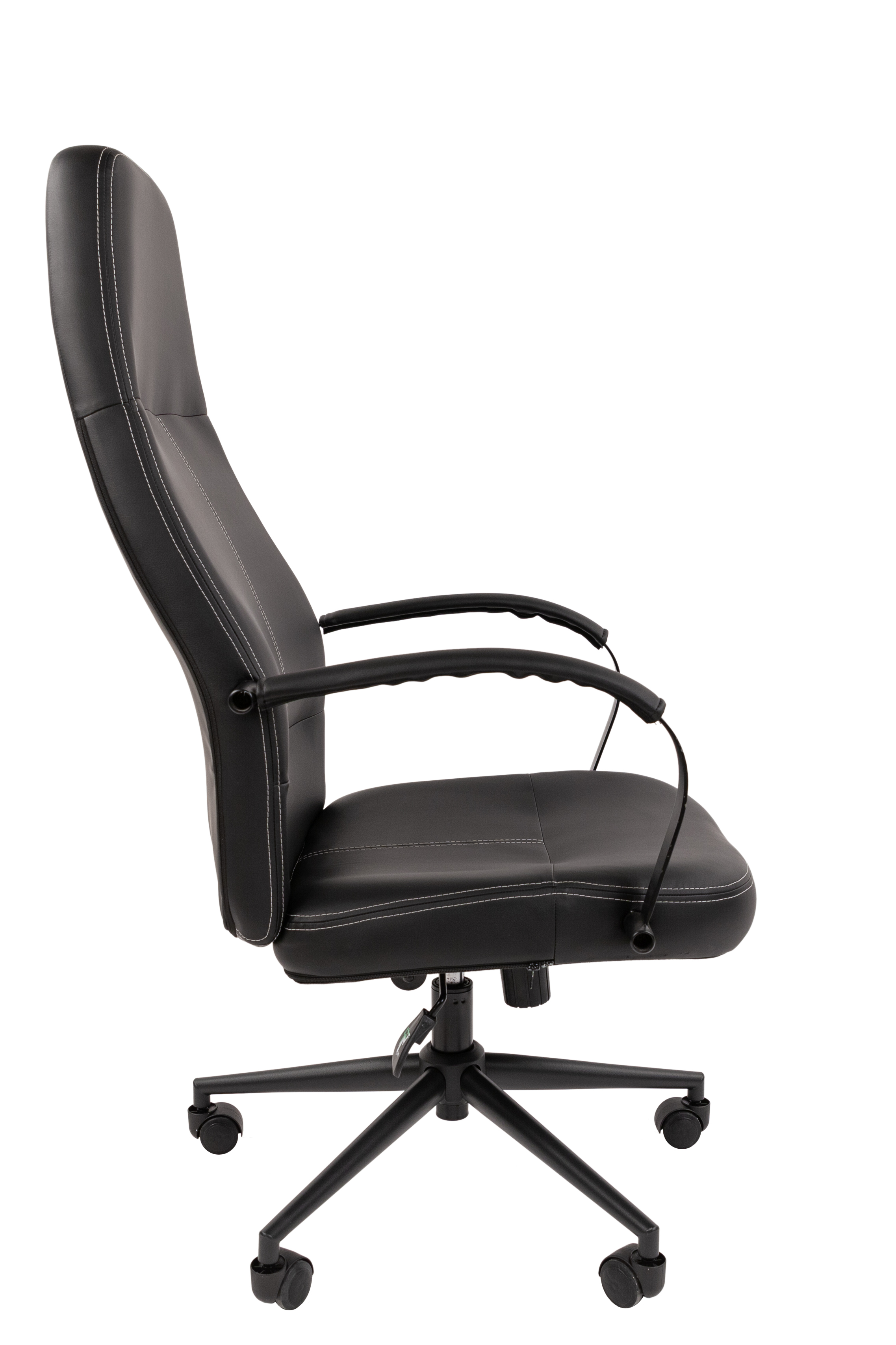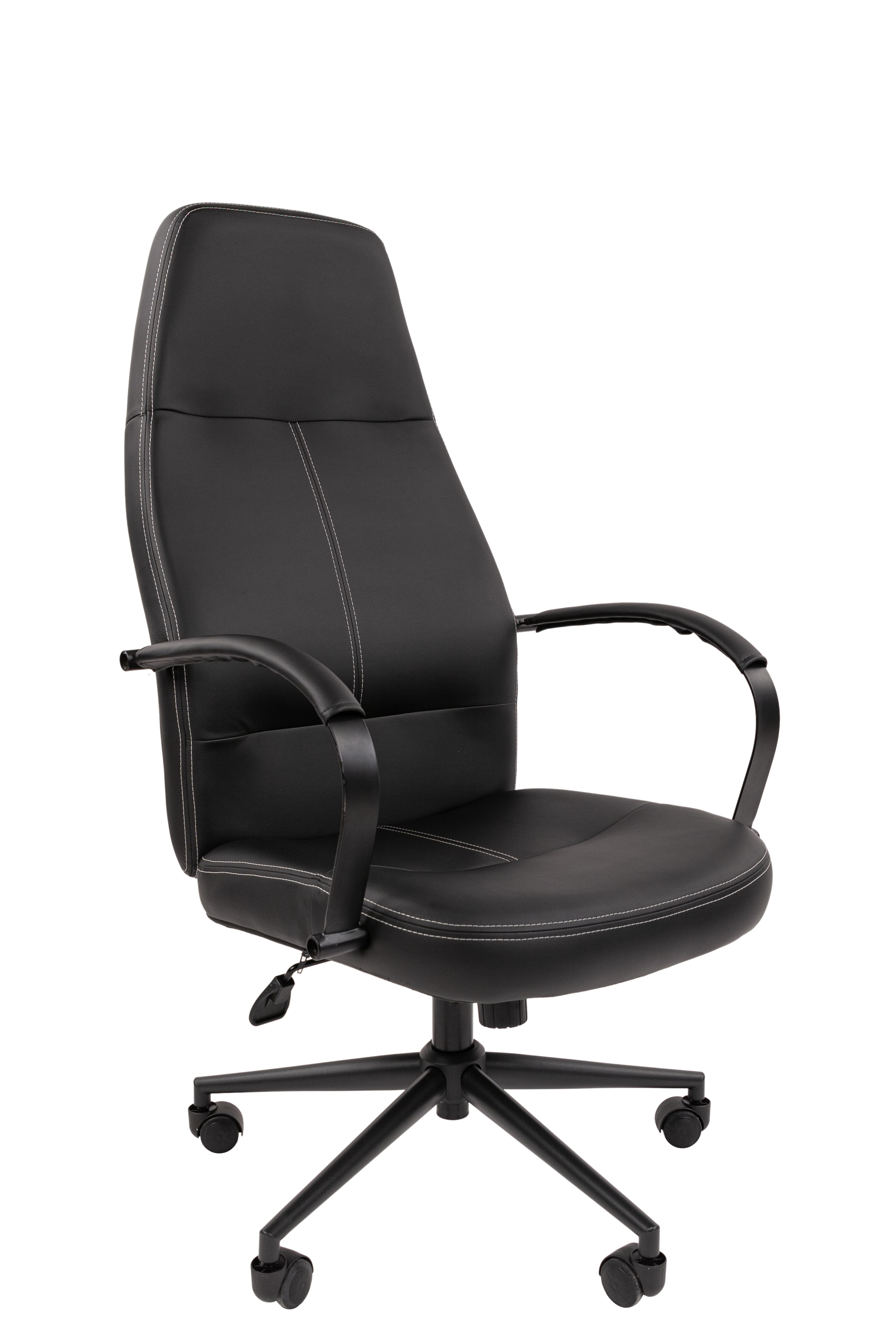 CHAIRMAN 940 – представительское черное кресло с высокой спинкой. Удобная посадка, обивка из экокожи с контрастной строчкой в сочетании с черной металлической крестовиной и подлокотниками в тон придаст деловому пространству акцент сдержанной роскоши. Изящный силуэт и ничего лишнего – идеальное кресло для лофт и минималистичных деловых интерьеров с мебелью на металлическом каркасе.