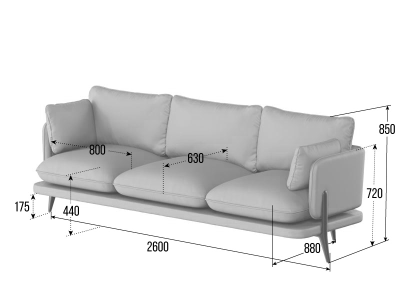 Поско Диван трехместный PSC-03 Velvet Lux 12/Металл Черный