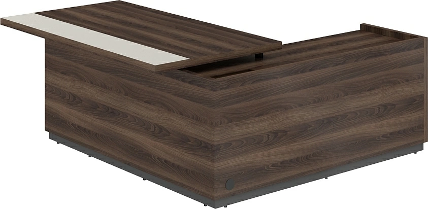 RF.104L.DAPG.DA / Стол для руководителя с комбинированной столешницей, левый 1850х1850х750 мм / столешница: дуб адриа/жемчужно-серый, основание стола: дуб адриа