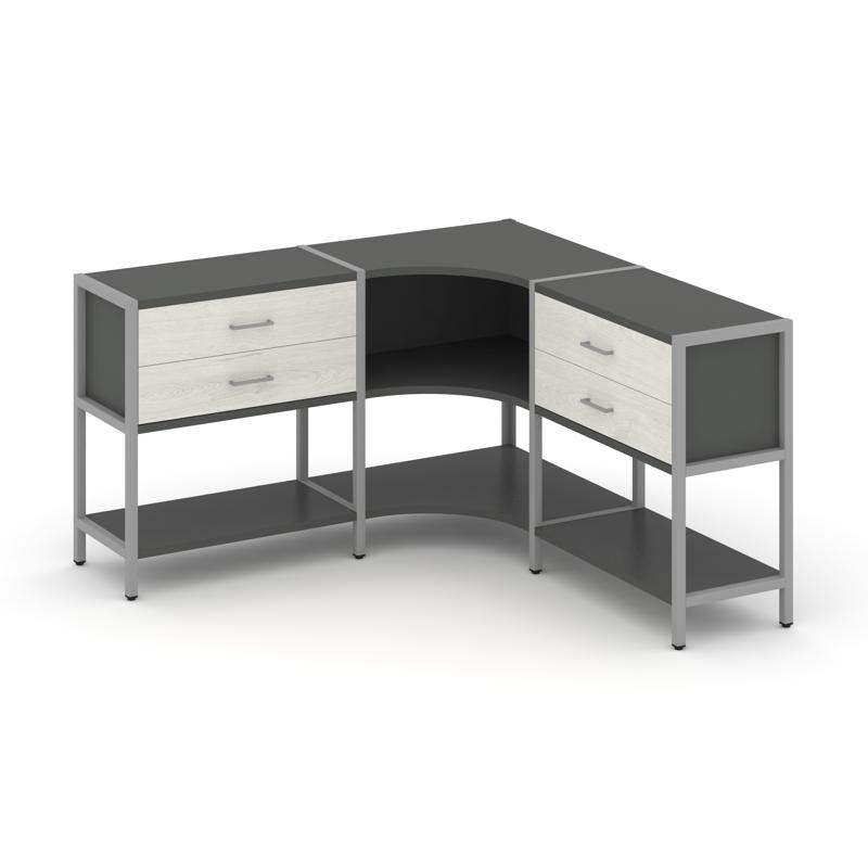 Shelf System Трехсекционный угловой стеллаж двухярусный с ящиками SN.STMU-231 Антрацит/Дуб Наварра/М