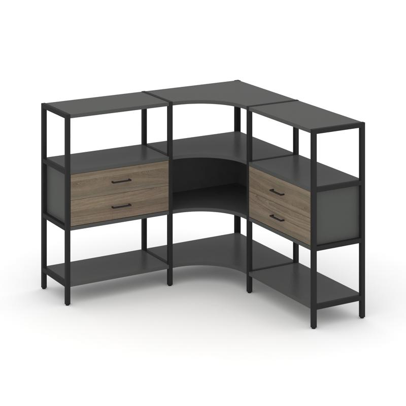 Shelf System Трехсекционный угловой стеллаж трехярусный с ящиками SN.STMU-331 Антрацит/Вяз Благородн