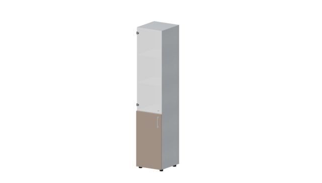 Шкаф 40х44х195см для документов, левый (1 дверь+1 белая матовая стеклянная дверь, 4 полки, ручка - а