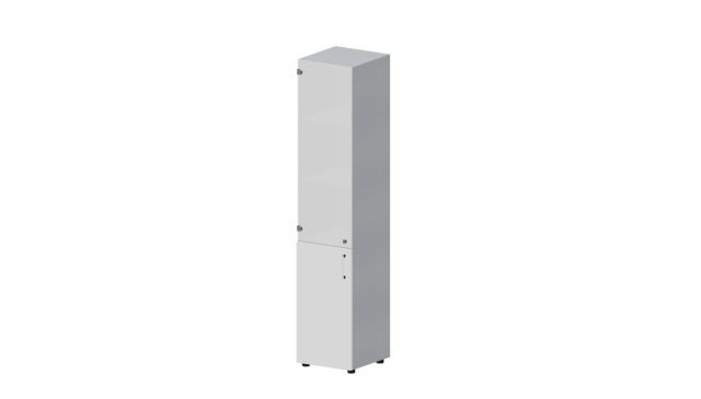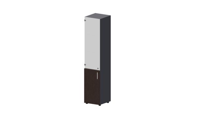 Шкаф 40х44х195см для документов, левый (1 дверь+1 белая матовая стеклянная дверь, 4 полки, ручка - х