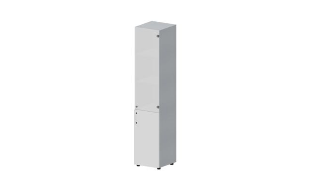 Шкаф 40х44х195см для документов, правый (1 дверь+1 белая матовая стеклянная дверь, 4 полки, ручка -