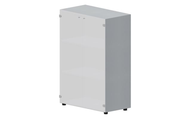Шкаф 80х44х118см для документов (2 белые матовые стеклянные двери, 2 полки, ручки - алюминий)