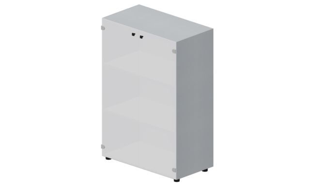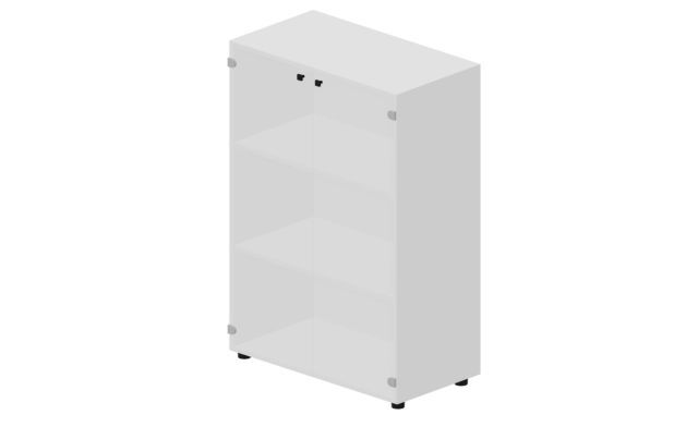 Шкаф 80х44х118см для документов (2 белые матовые стеклянные двери, 2 полки, ручки - хром)