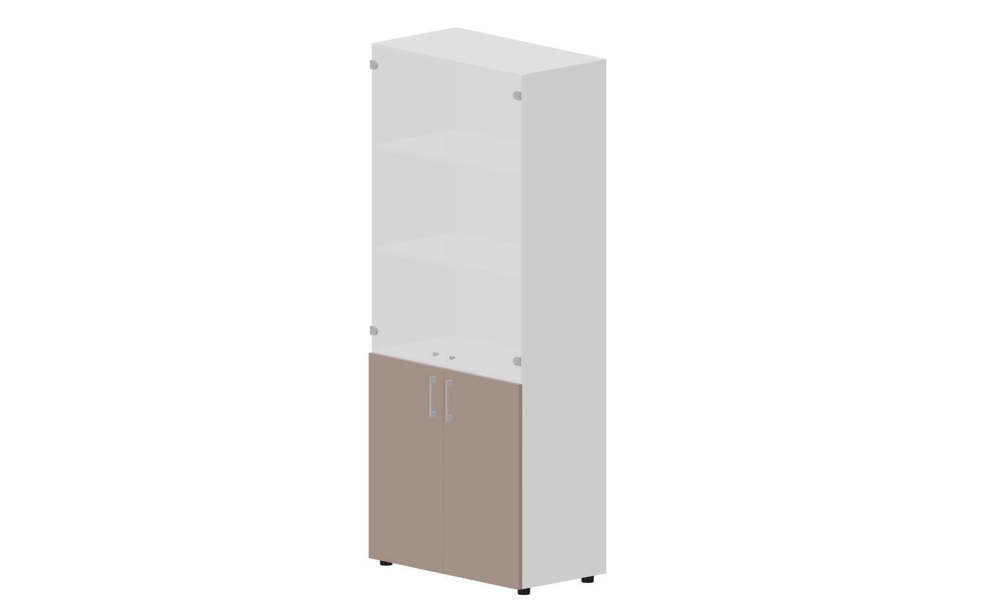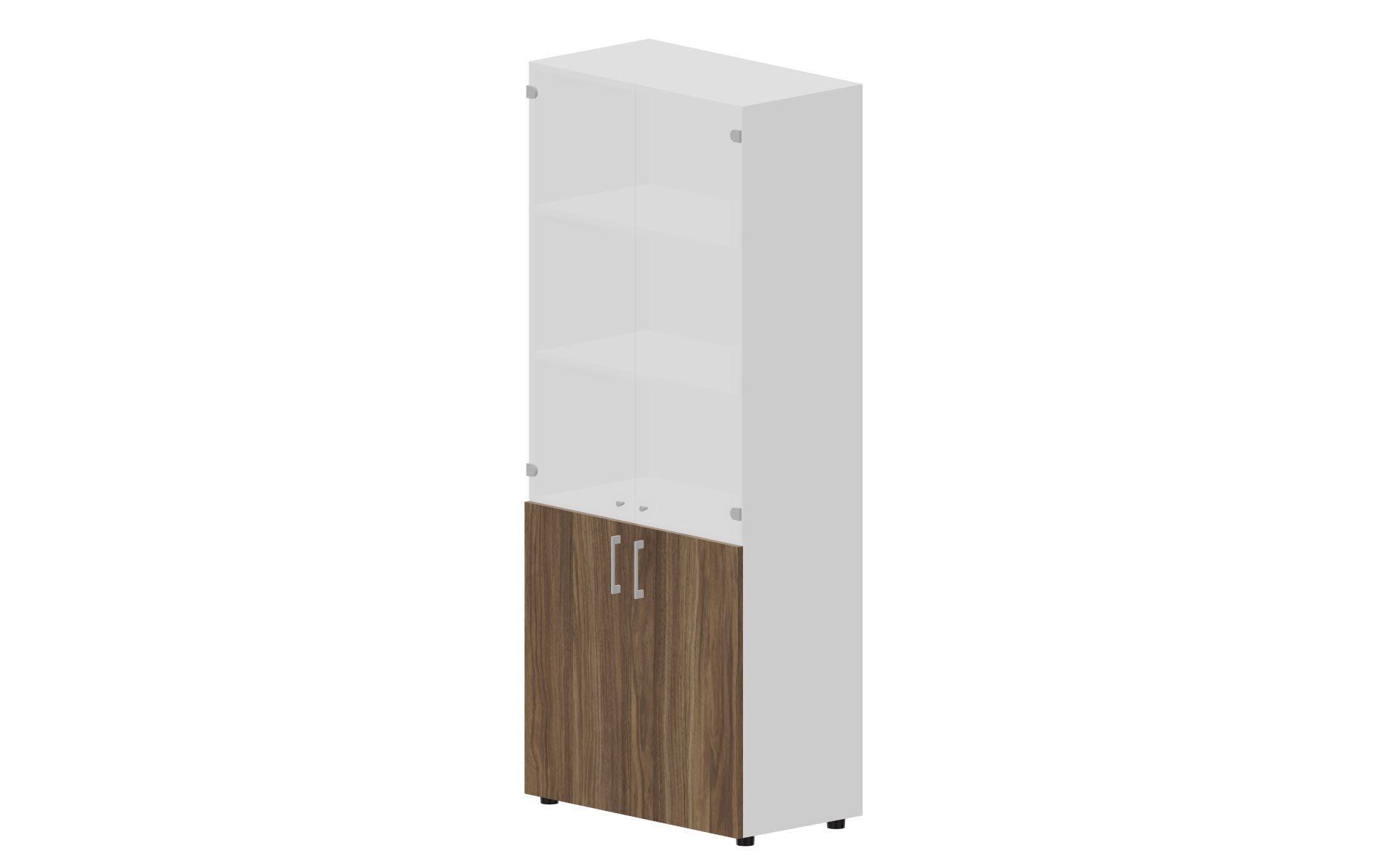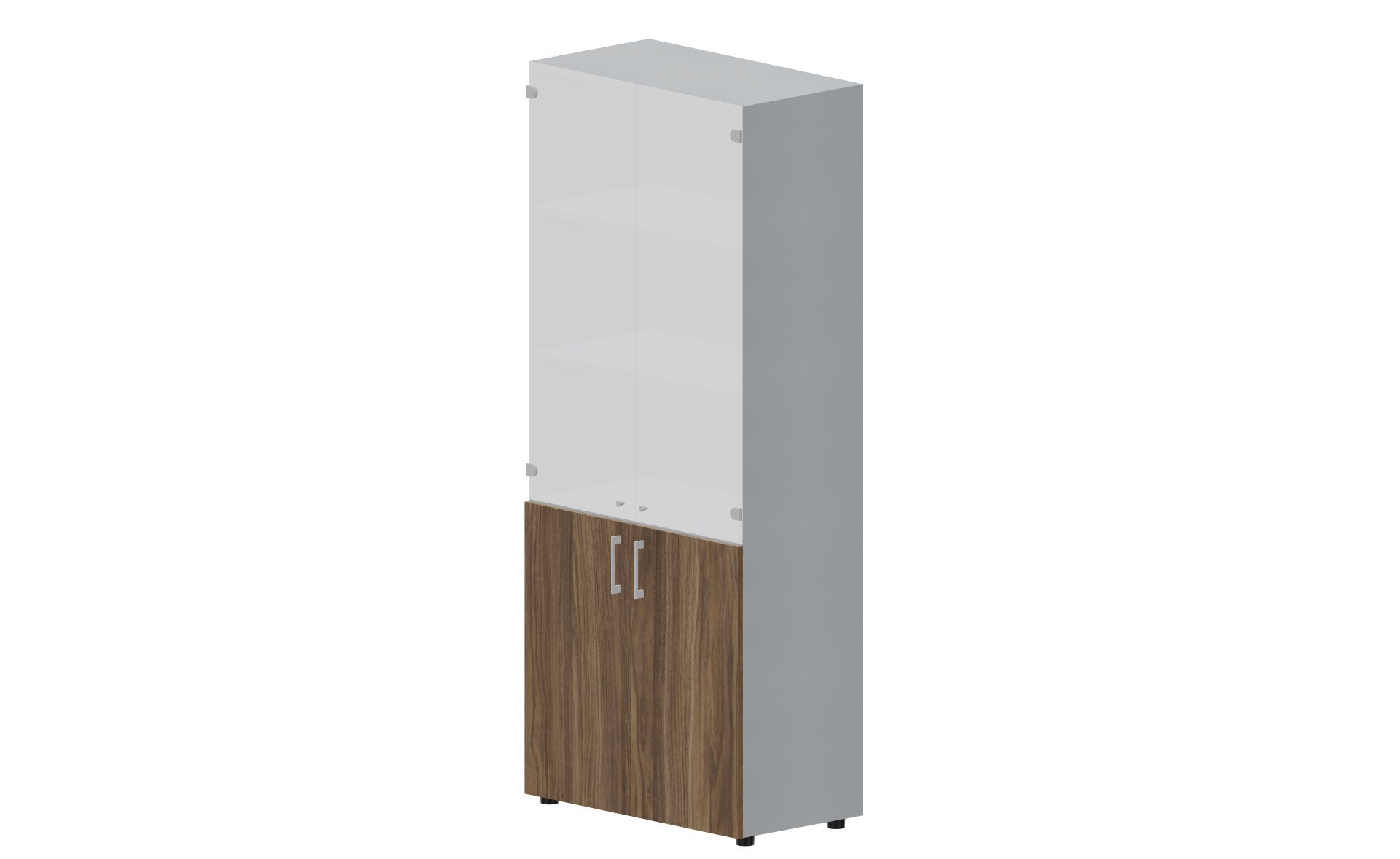 Шкаф 80х44х195см для документов (2 двери+2 белые матовые стеклянные двери, 4 полки, ручки - алюминий