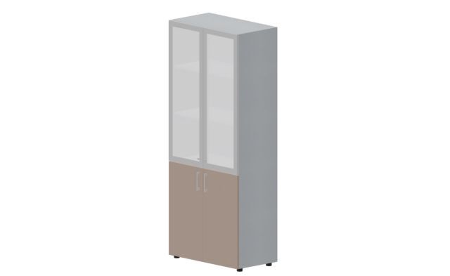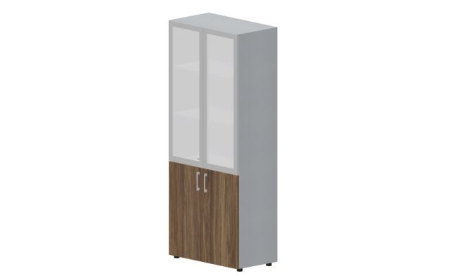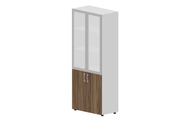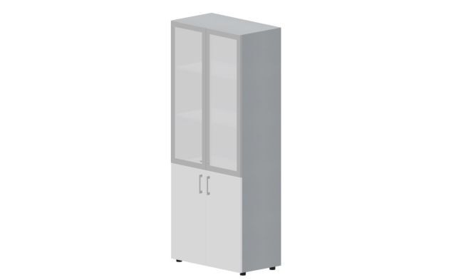 Шкаф 80х44х195см для документов (2 двери+2 матовые стеклянные двери в раме, 4 полки, ручки - алюмини
