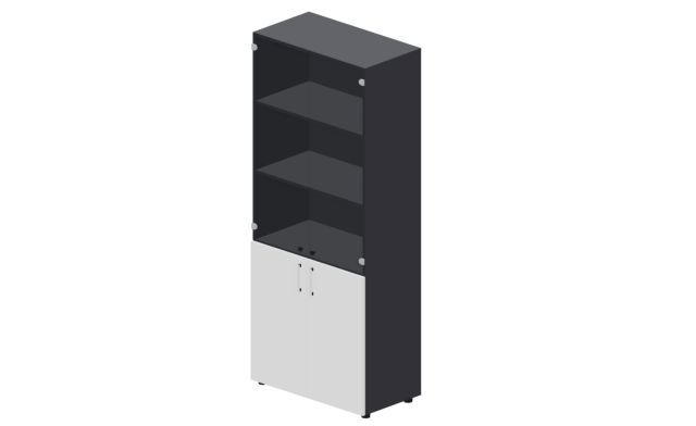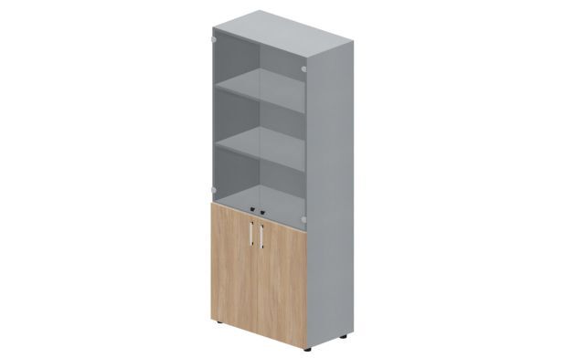 Шкаф 80х44х195см для документов (2 двери+2 стеклянные тонированные двери, 4 полки, ручки - хром)