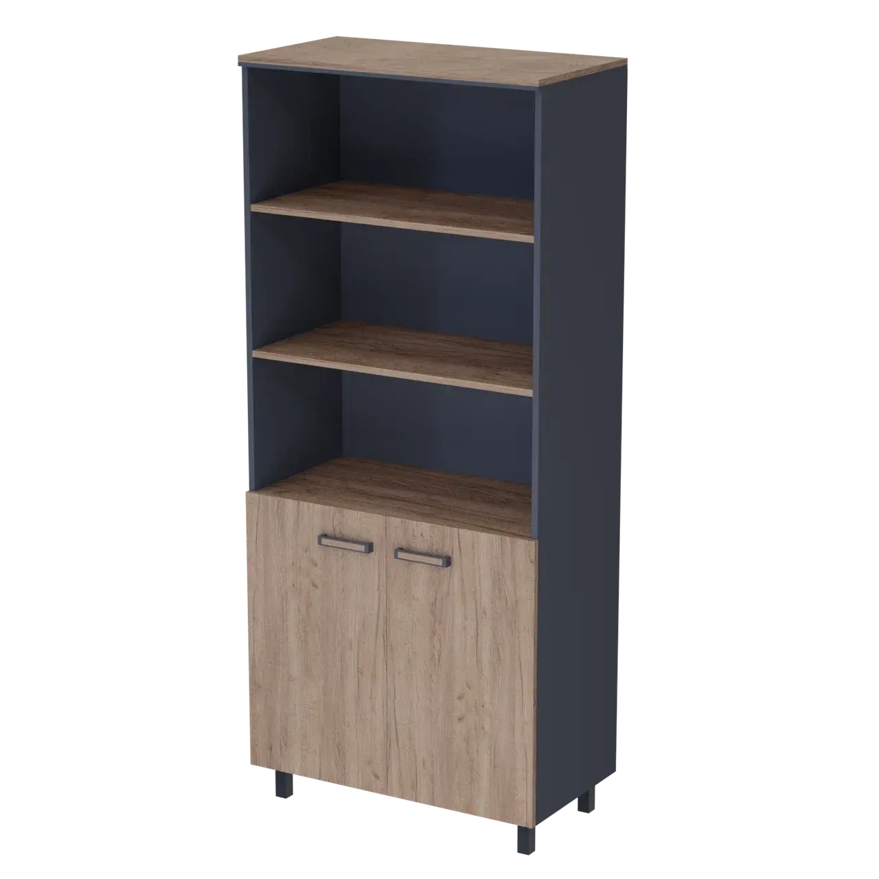 Шкаф для документов высокий полуоткрытый PREGO 850х450х2100 П.СВ+Т-1+ФН+ПО Дуб Крафт табачный/Антрацит
