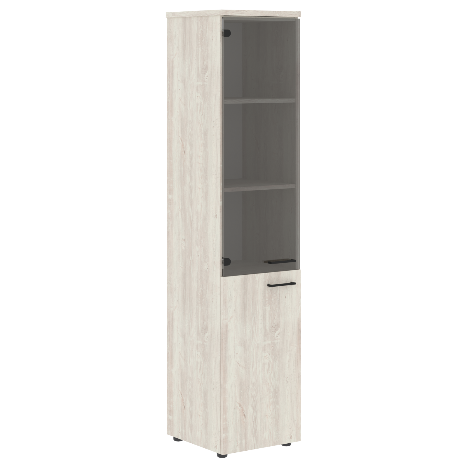 Универсальный шкаф комбинированный XTEN для офисного или домашнего использования. Размеры - 432х1955х432 мм, тип - левосторонний, цвет - Белый. Шкаф имеет солидный топ – 25 мм. Оснащен 5 полками, две нижние полки закрыты дверцей из ЛДСП, три верхние - стекляной дверцей. На всех дверцах имеются долговечные и стильные металлические ручки. Конструкция шкафа оснащена прочными силовыми креплениями – эксцентриковыми стяжками. Регулируемые по высоте опоры обеспечат шкафу устойчивость на неровном полу.