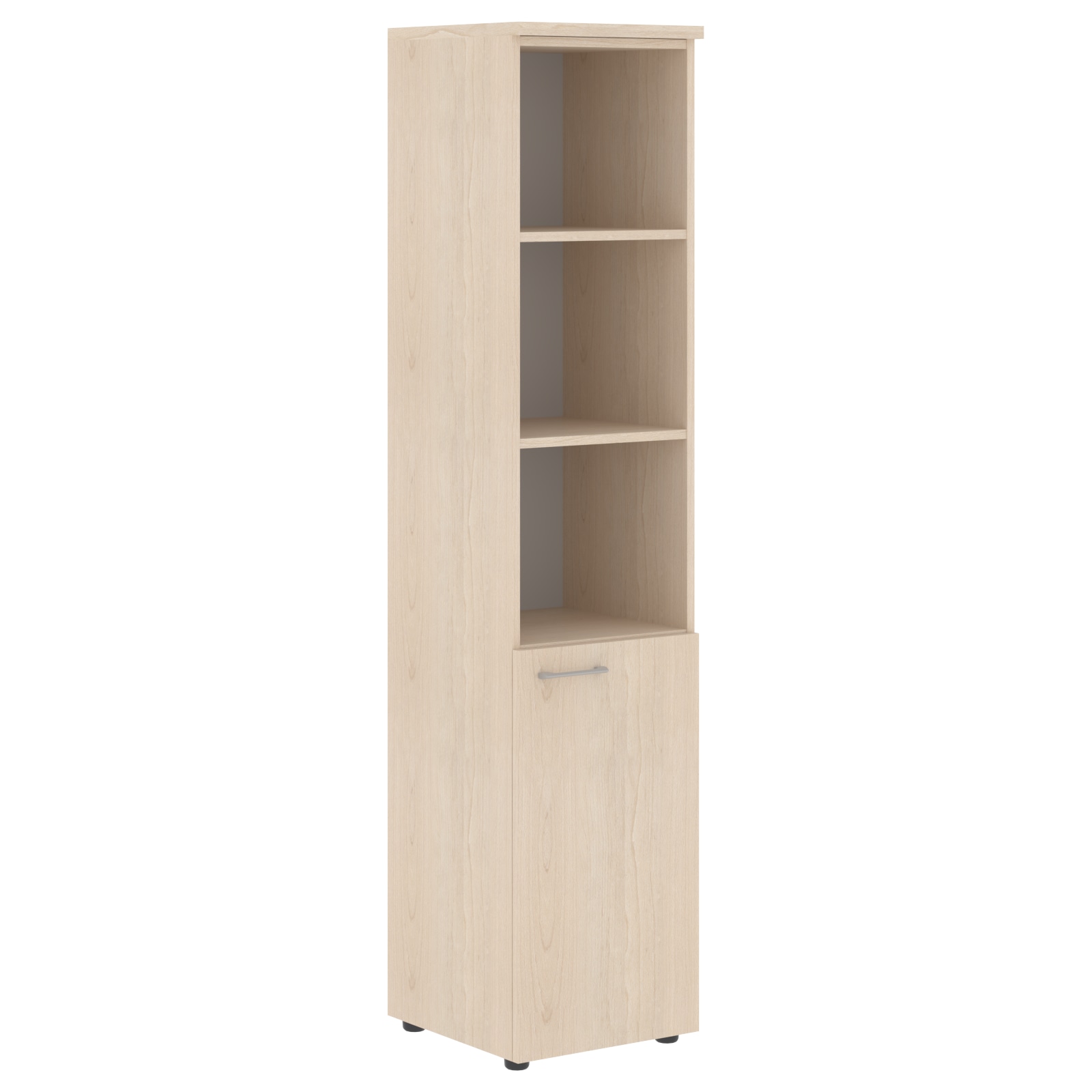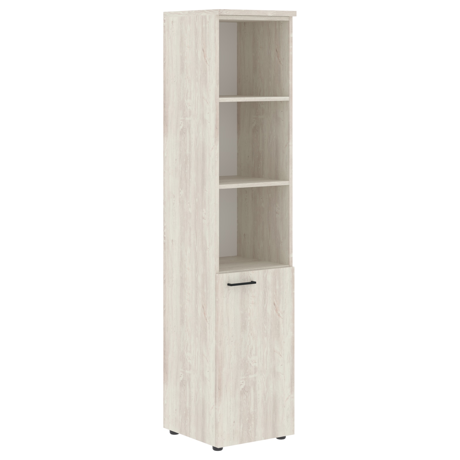 Универсальный шкаф-стеллаж XTEN для офисного или домашнего использования. Размеры - 432х1955х432 мм, тип - правосторонний, цвет - Белый. Шкаф имеет солидный топ – 25 мм. Оснащен 5 полками, две нижние полки закрыты дверцей из ЛДСП, три верхние - открытые. На дверце установлена долговечная и стильная металлическая ручка. Конструкция шкафа оснащена прочными силовыми креплениями – эксцентриковыми стяжками. Регулируемые по высоте опоры обеспечат шкафу устойчивость на неровном полу.