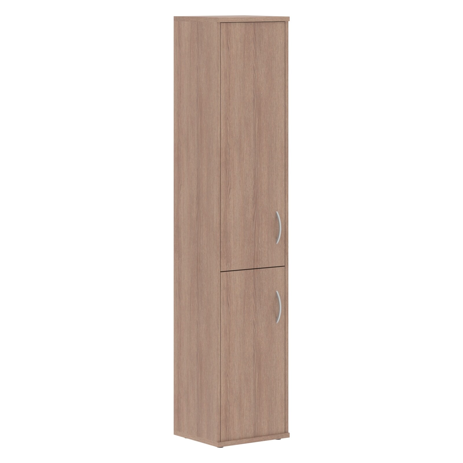 Узкий высокий шкаф IMAGO с двумя глухими дверьми, для офисного или домашнего использования. Размеры - 406х1975х365 мм, 5 полок, тип – левосторонний, цвет - Ясень Шимо. Надежная защита торцевых поверхностей - кромка ПВХ 2 мм. Шкаф оснащен регулируемыми опорами для компенсации неровностей пола.