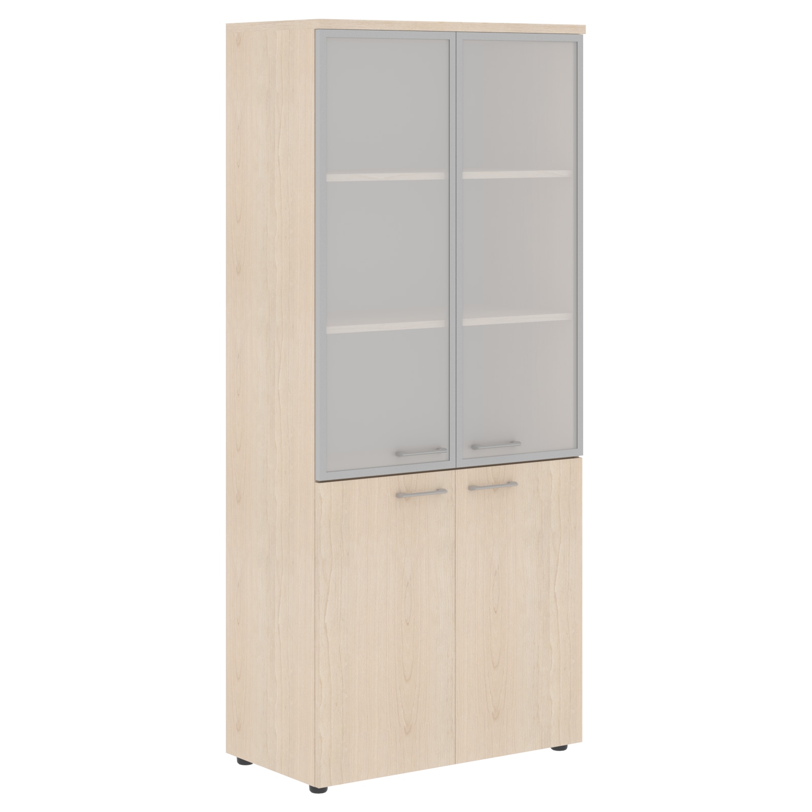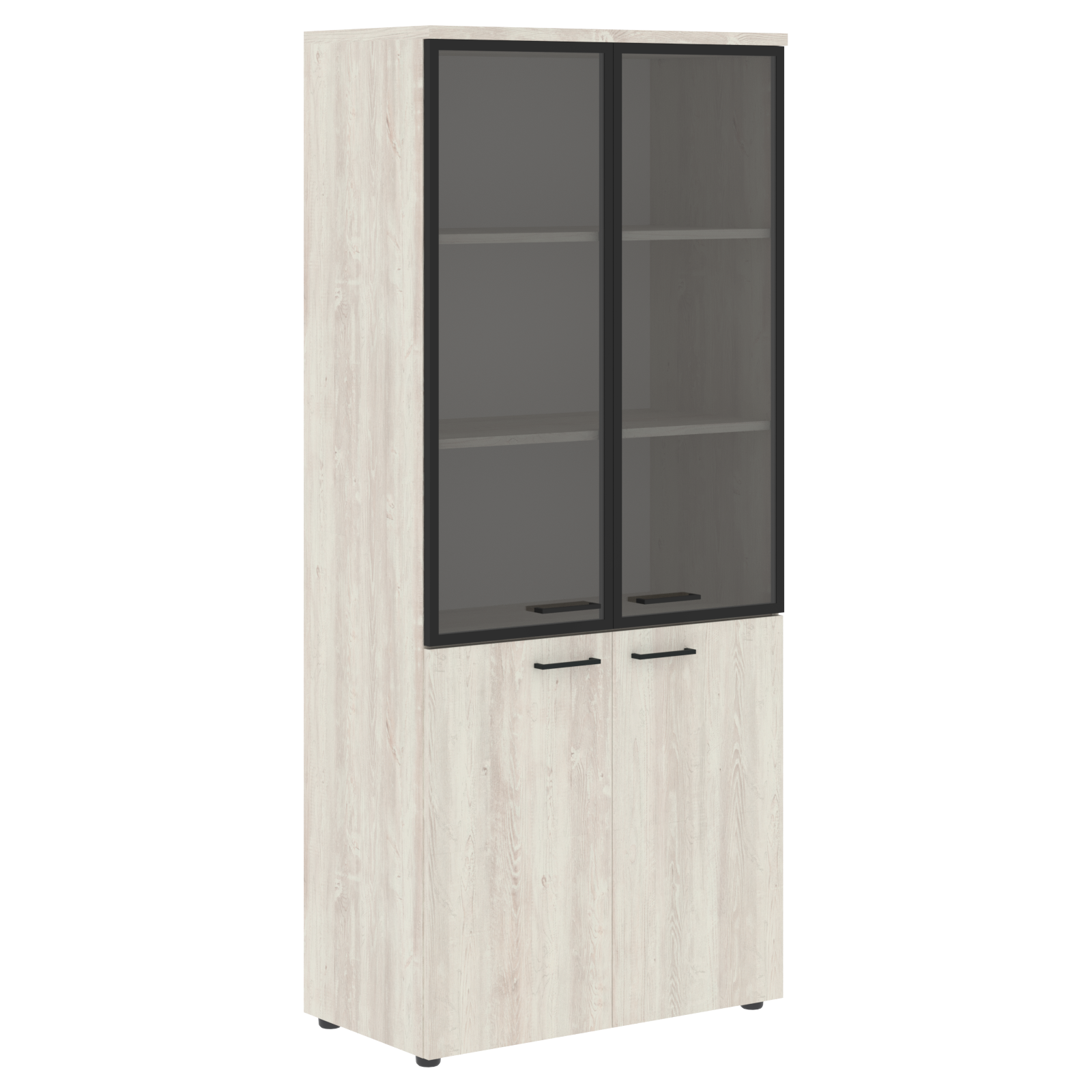 Широкий комбинированный шкаф XTEN для офисного или домашнего использования. Размеры - 856х1955х432 мм, цвет - Белый. Шкаф имеет солидный топ – 25 мм. Оснащен 5 полками, две нижние полки закрыты дверцами из ЛДСП, три верхние – стеклянными дверцами со стильной матовой тонировкой. На всех дверцах имеются долговечные и стильные металлические ручки. Конструкция шкафа оснащена прочными силовыми креплениями – эксцентриковыми стяжками. Регулируемые по высоте опоры обеспечат шкафу устойчивость на неровном полу.