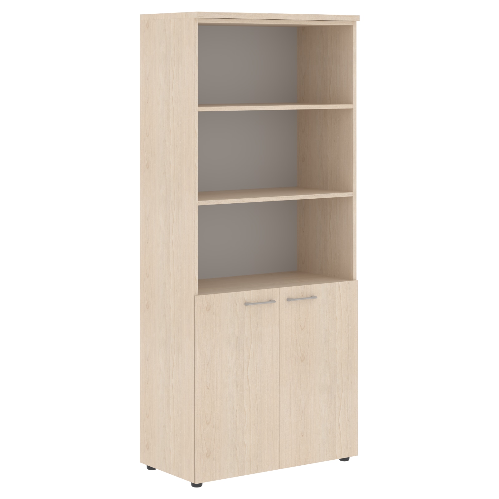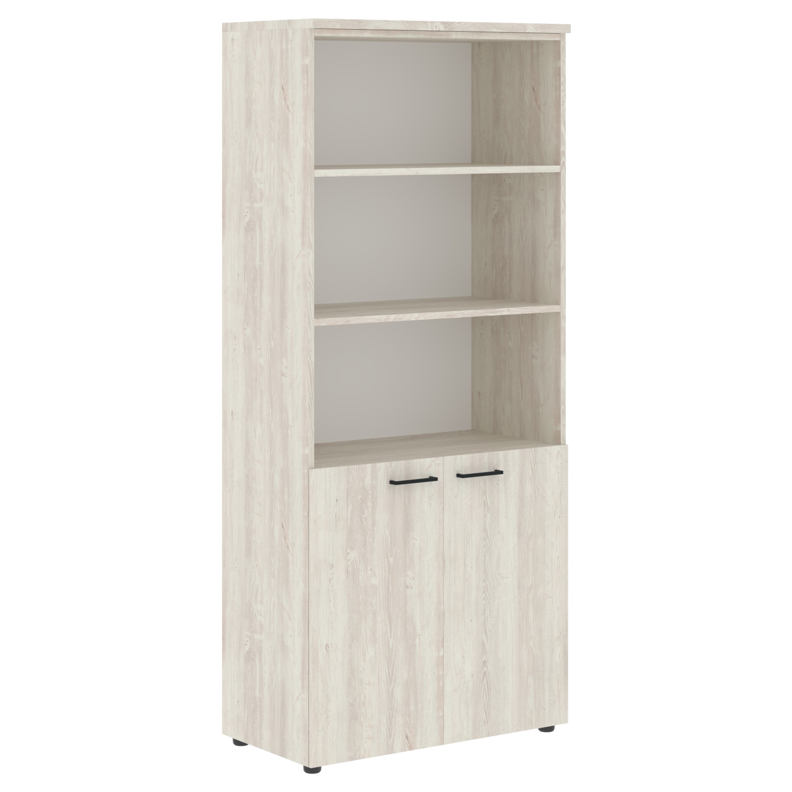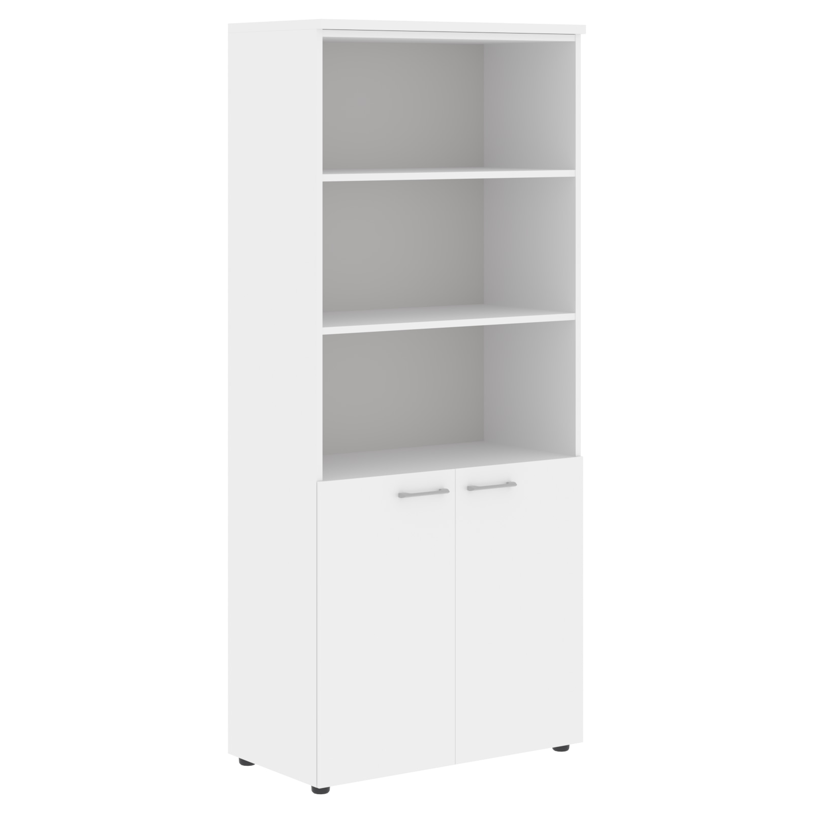 Широкий шкаф-стеллаж XTEN для офисного или домашнего использования. Размеры - 856х1955х432 мм, цвет - Белый. Шкаф имеет солидный топ – 25 мм. Двустворчатый шкаф-стеллаж оснащенный 5 просторными полками, две нижние полки закрыты дверцами из ЛДСП, три верхние - открытые. На дверцах установлены долговечные и стильные металлические ручки. Конструкция шкафа оснащена прочными силовыми креплениями – эксцентриковыми стяжками. Регулируемые по высоте опоры обеспечат шкафу устойчивость на неровном полу.