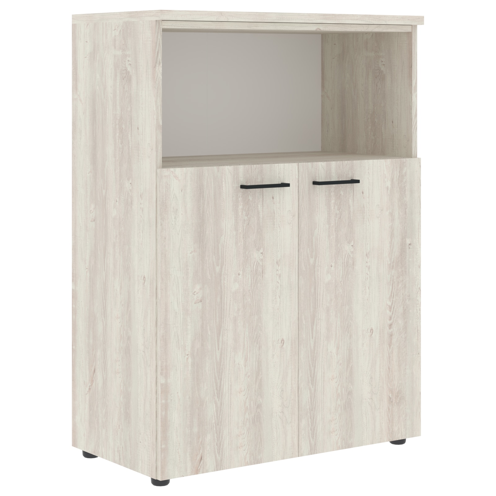 Широкий средний шкаф XTEN для офисного или домашнего использования. Размеры - 856х1190х432 мм, цвет - Белый. Оснащен 3 просторными полками, 2 нижние закрываются дверцами из ЛДСП, верхняя – открытая. На дверцах установлены долговечные и стильные металлические ручки. Конструкция шкафа оснащена прочными силовыми креплениями – эксцентриковыми стяжками. Надежная защита торцов всех элементов - кромка ПВХ. Регулируемые по высоте опоры обеспечат шкафу устойчивость на неровном полу.