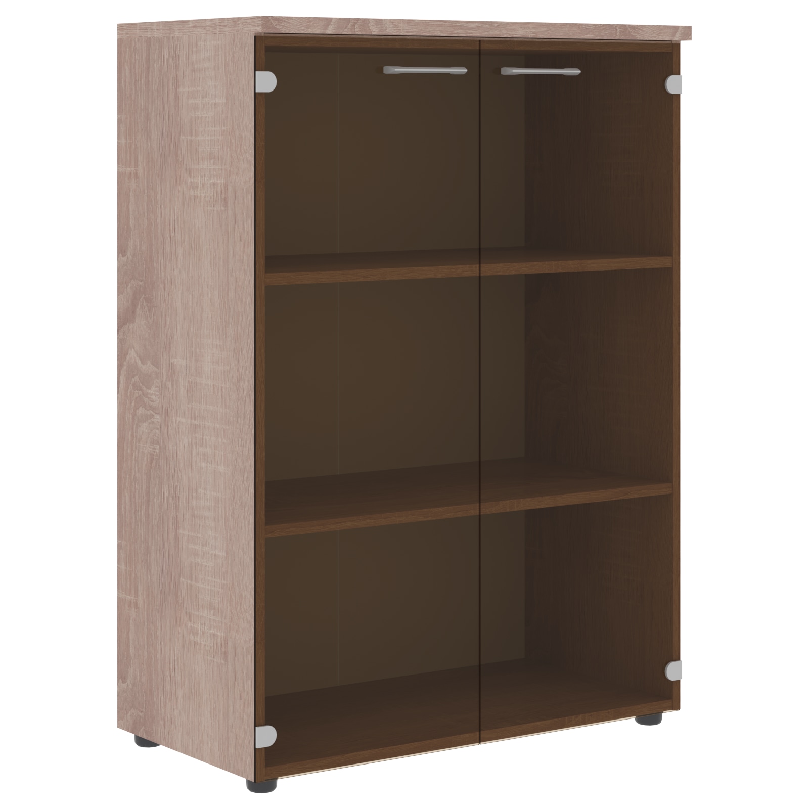 Широкий шкаф средний XTEN для офисного или домашнего использования. Размеры - 856х1190х432 мм, цвет - Белый. Шкаф имеет солидный топ – 25 мм. Двустворчатый шкаф оснащенный 3 просторными полками, которые закрыты стеклянными дверцами. На дверцах установлены долговечные и стильные металлические ручки. Конструкция шкафа оснащена прочными силовыми креплениями – эксцентриковыми стяжками. Регулируемые по высоте опоры обеспечат шкафу устойчивость на неровном полу.