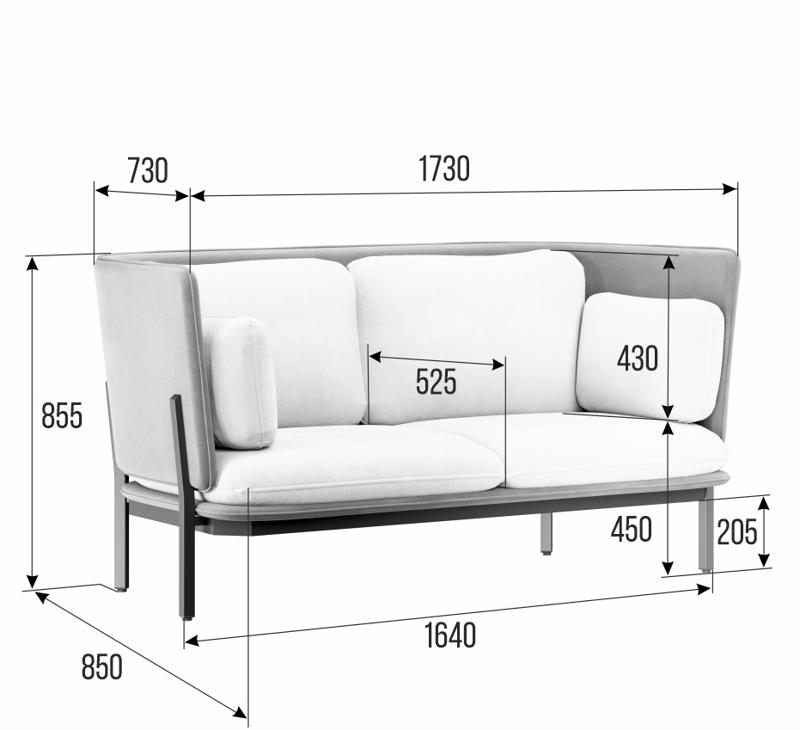 Stato Диван двухместный с низкой спинкой STA-02L Velutto 29/Металл Черный 1730*850*855