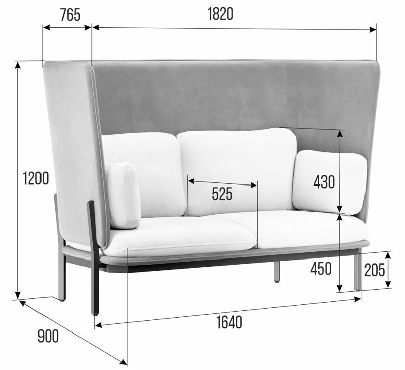 Stato Диван двухместный с высокой спинкой STA-02 Teddy 316/Teddy 35/Металл Черный 1820*900*1200