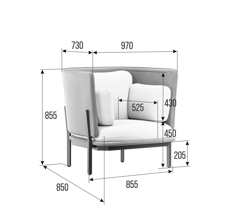Stato Диван одноместный с низкой спинкой STA-01L Verona 66/Металл Черный 970*850*855