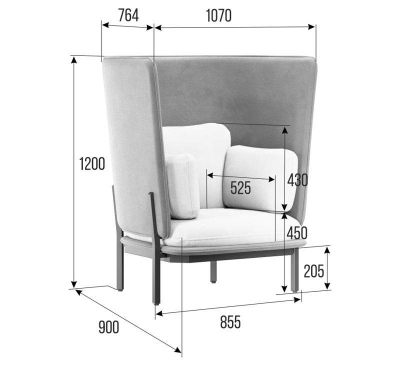 Stato Диван одноместный с высокой спинкой STA-01 Velutto 07/Velutto 36/Металл Черный 1070*900*1200